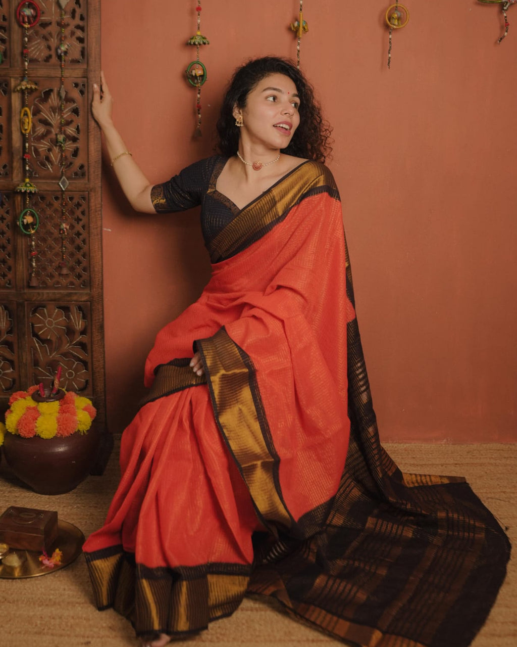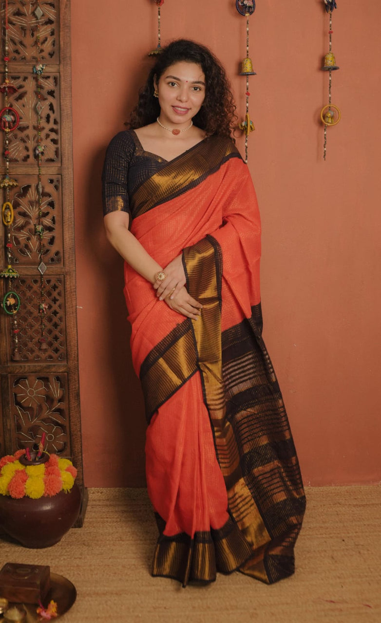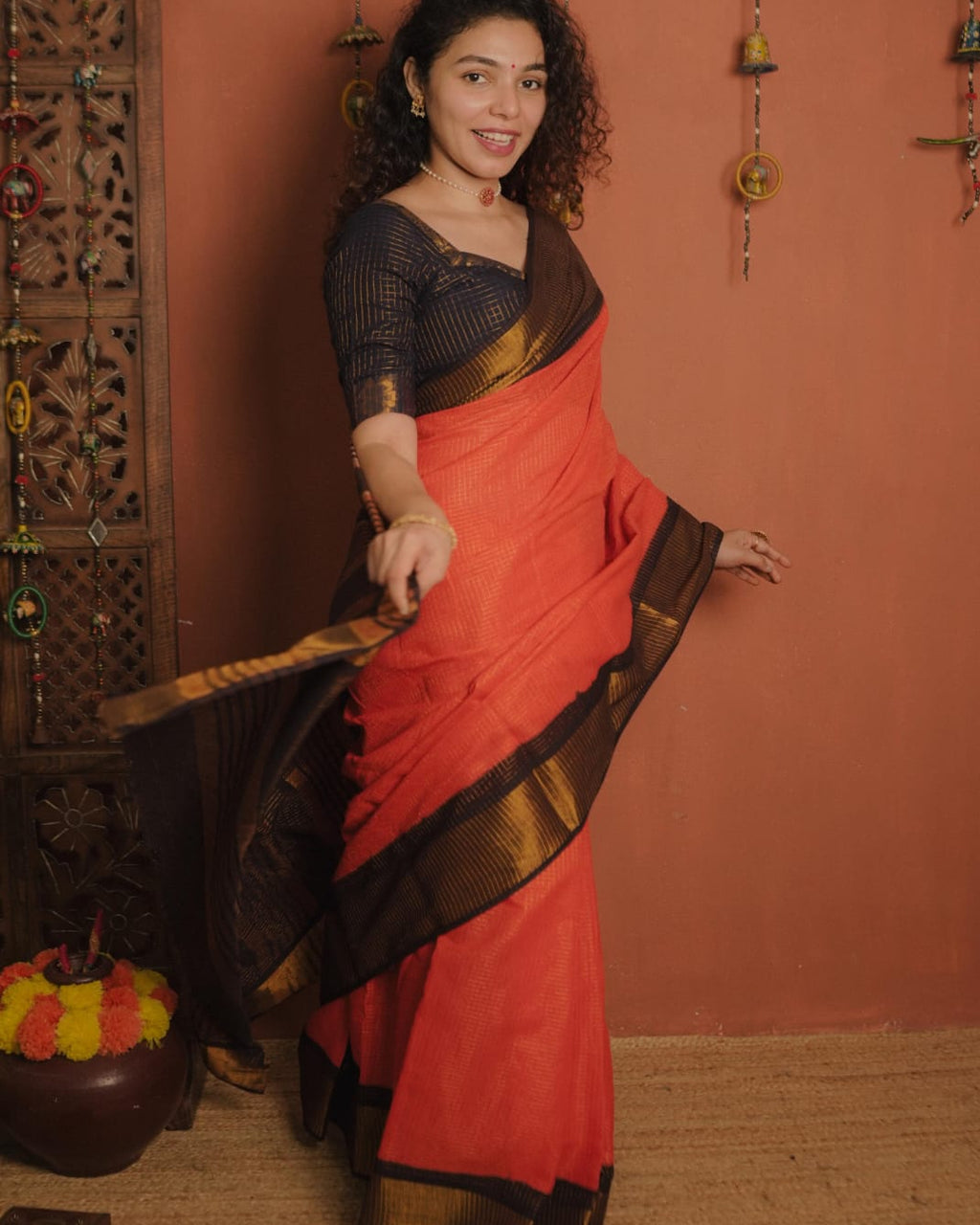 Sungudi Cotton Check Saree with Contrast Dyed Border.