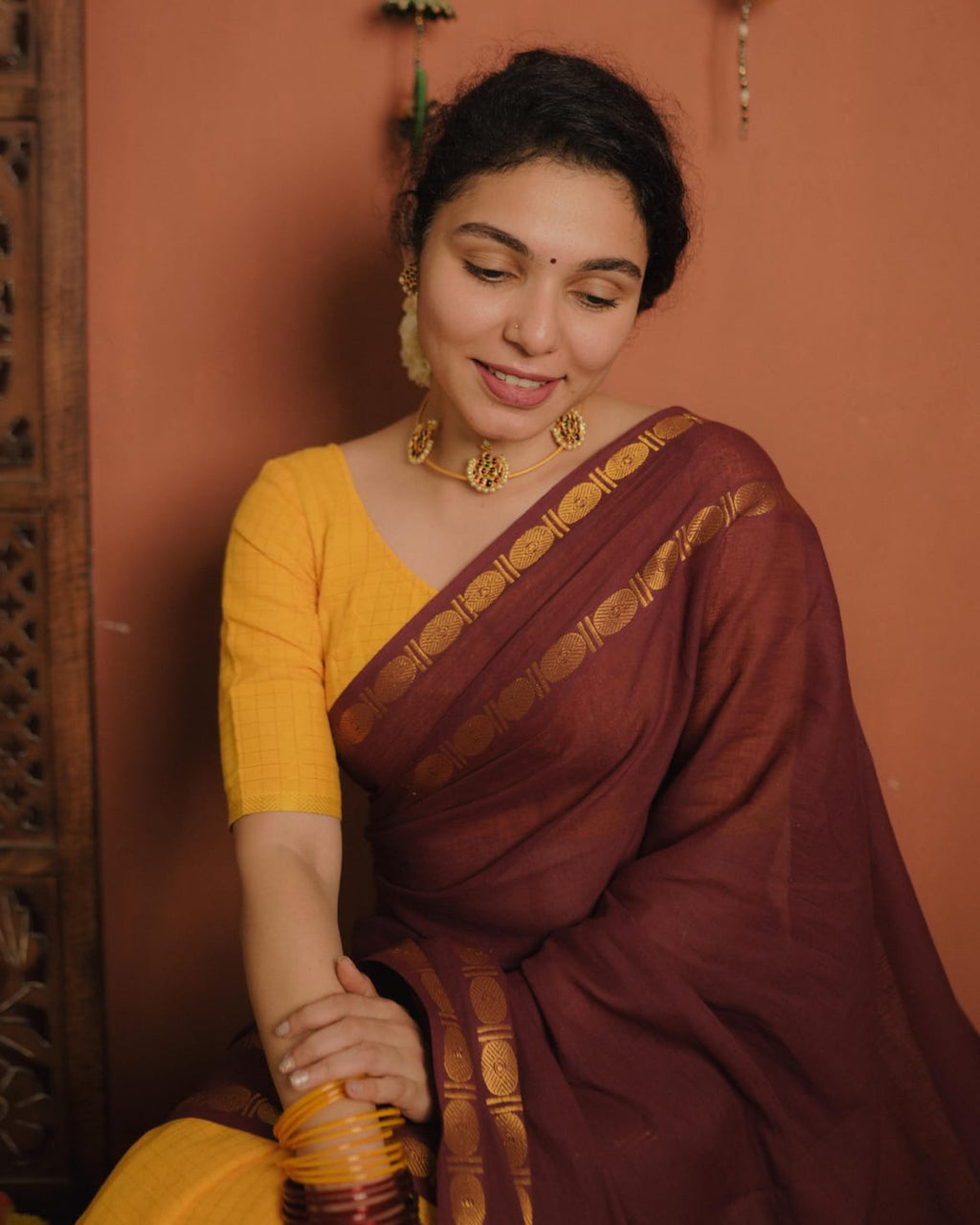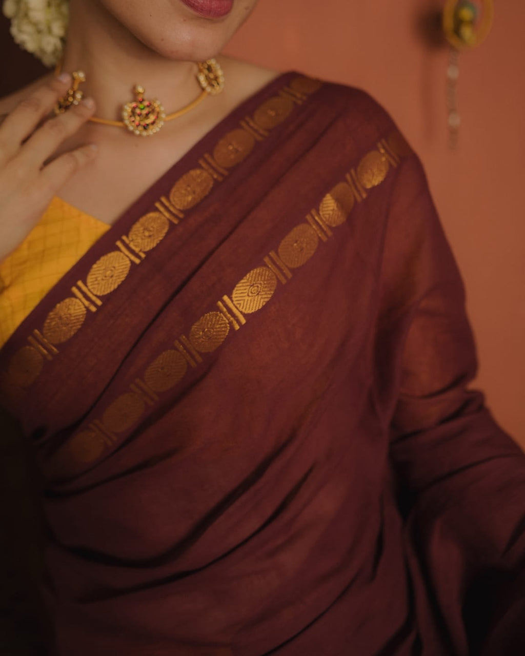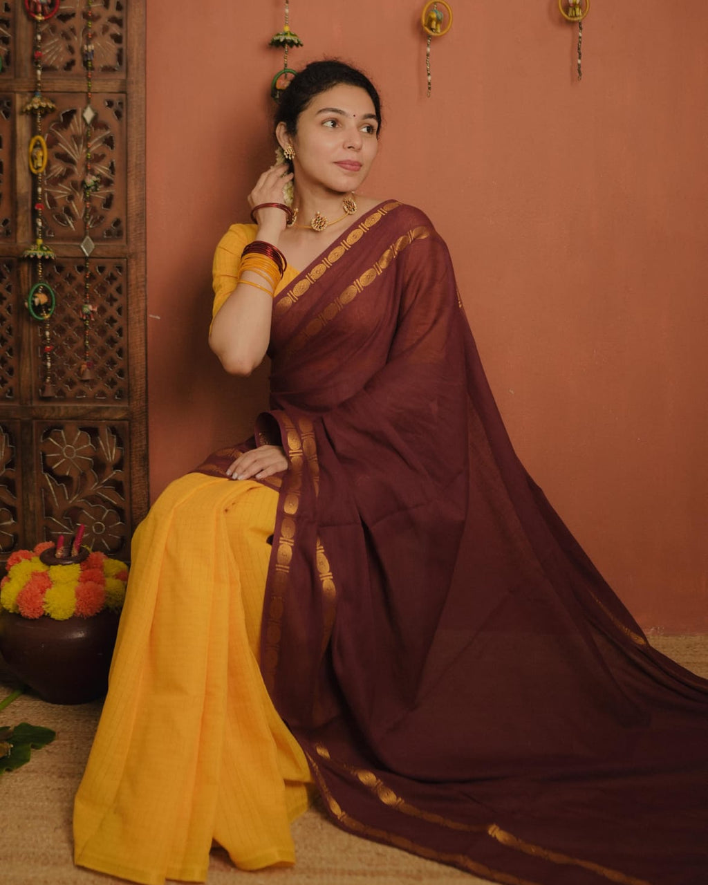 Sungudi Cotton Half and Half Designer Saree. Check weaving on lower part and Jerry kettu Borders on the Upper half