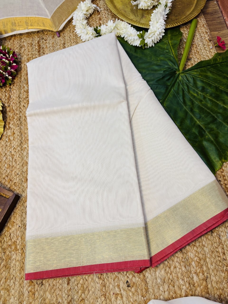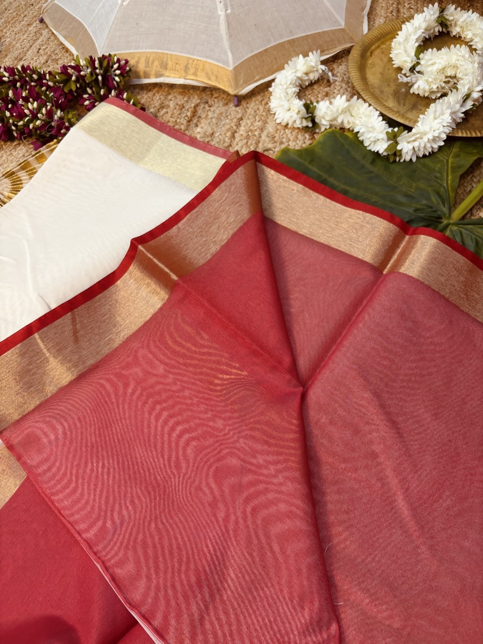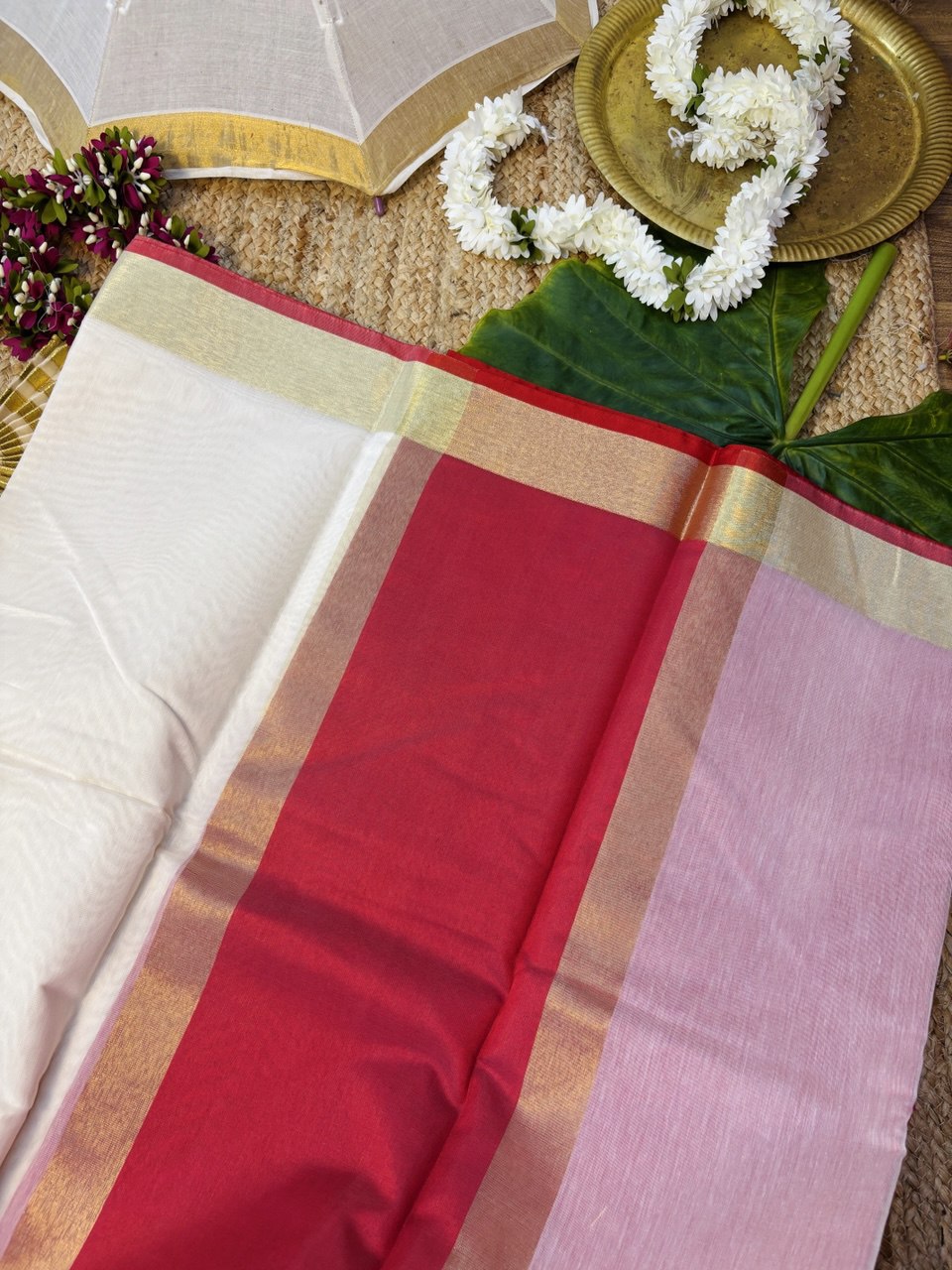 Semi Chanderi Saree With Golden Zeri Border