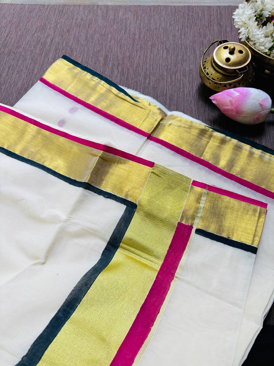 Kerala Cotton Saree with Hand-Block Prints. Rich hand-block print on the borders and pallu.