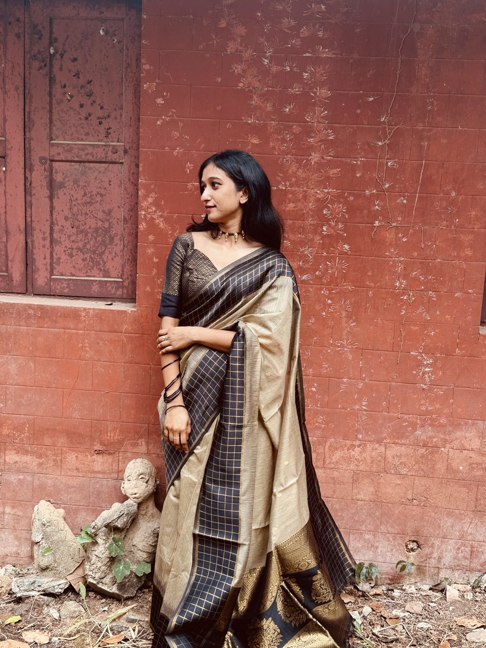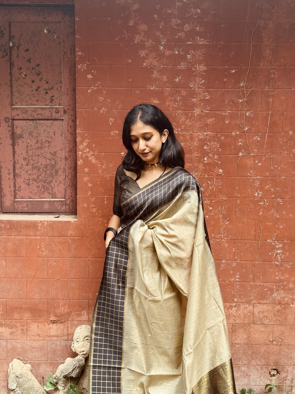 Color :- Cream & Black
