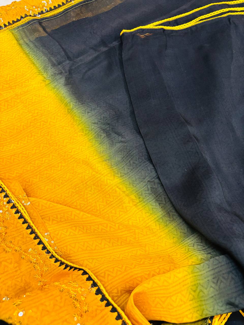 Designer Soft Organza Ombre Dyed Saree with Heavy Embroidery on Pallu.