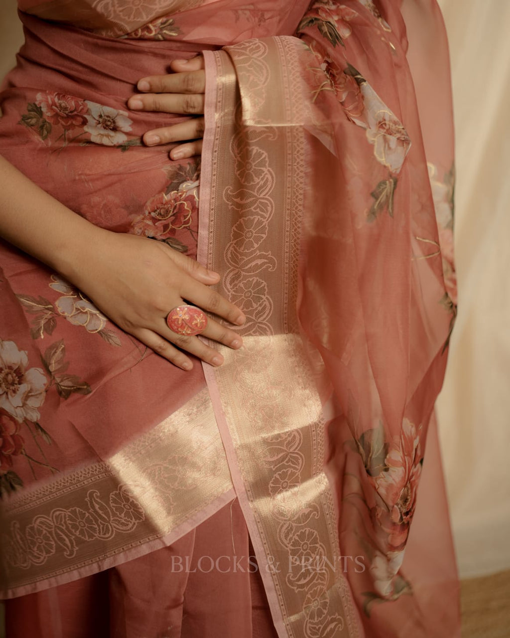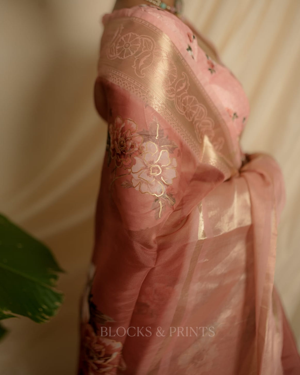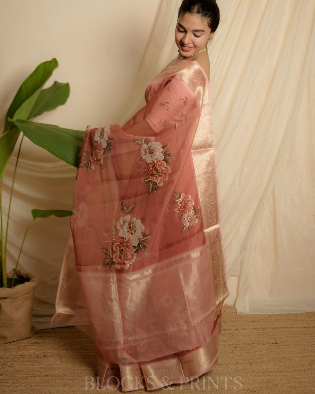 Floral printed Organza silk saree with Zeri Border.