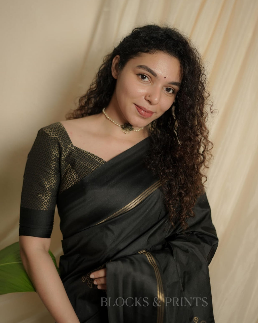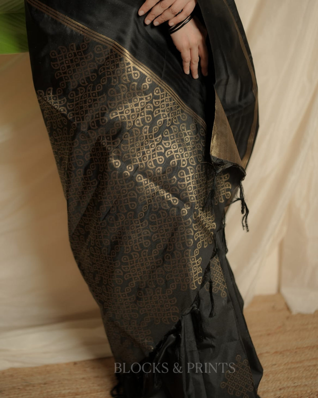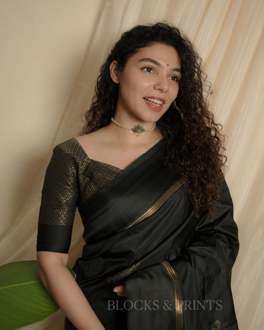 Blouse :- Heavy woven all over Golden zeri in Black Color. (Unstitched) same as in the pic.