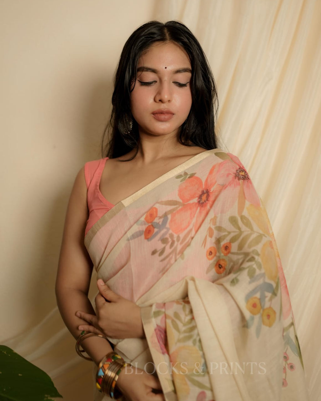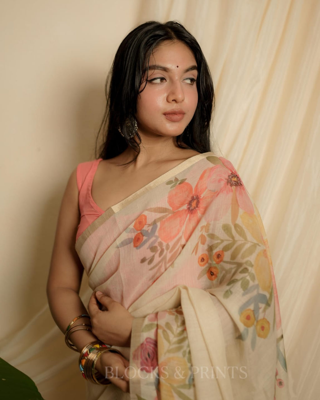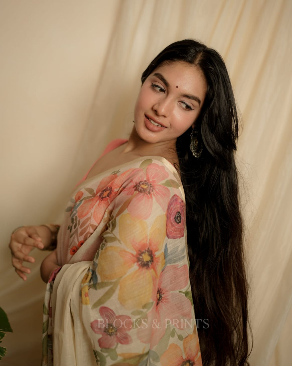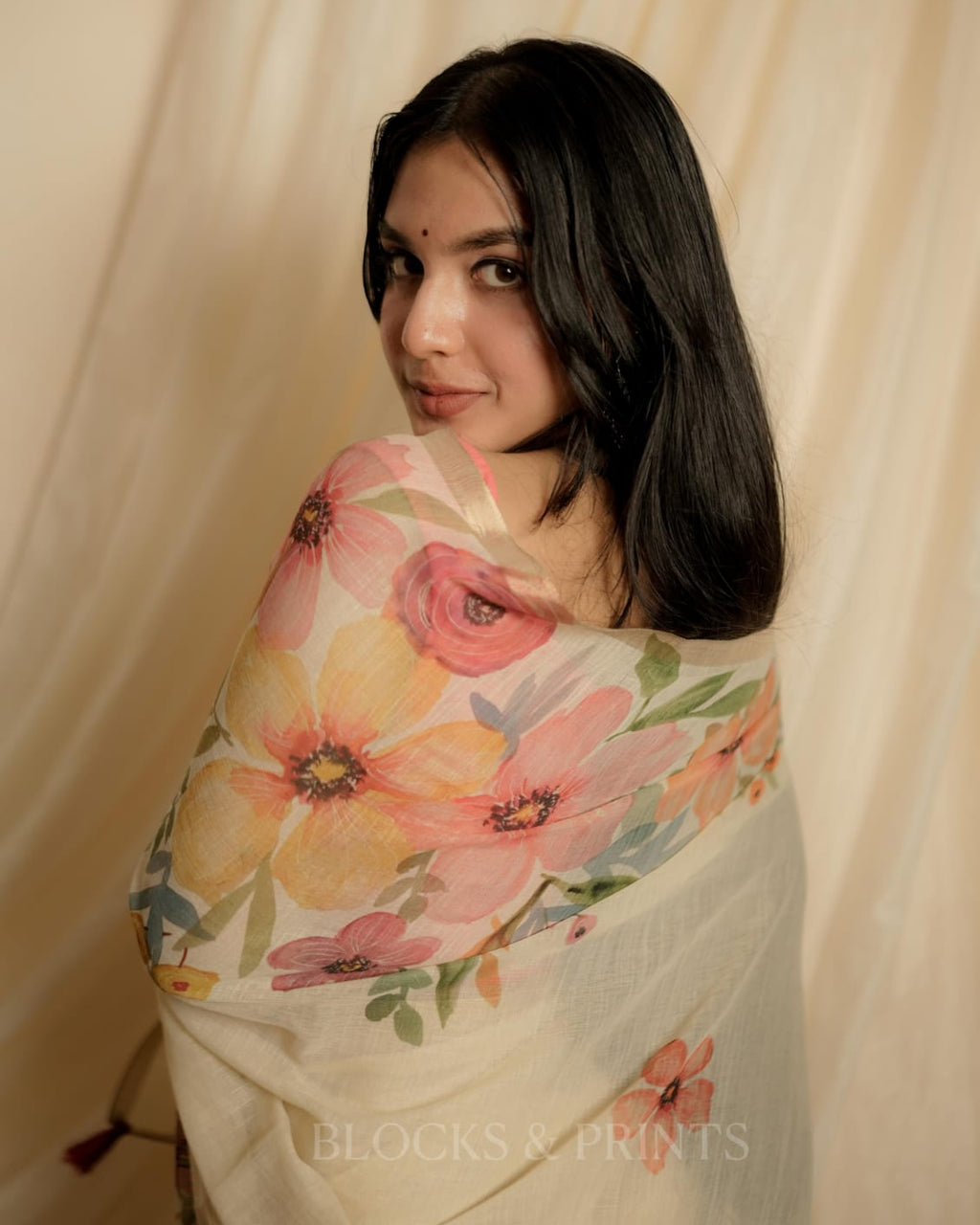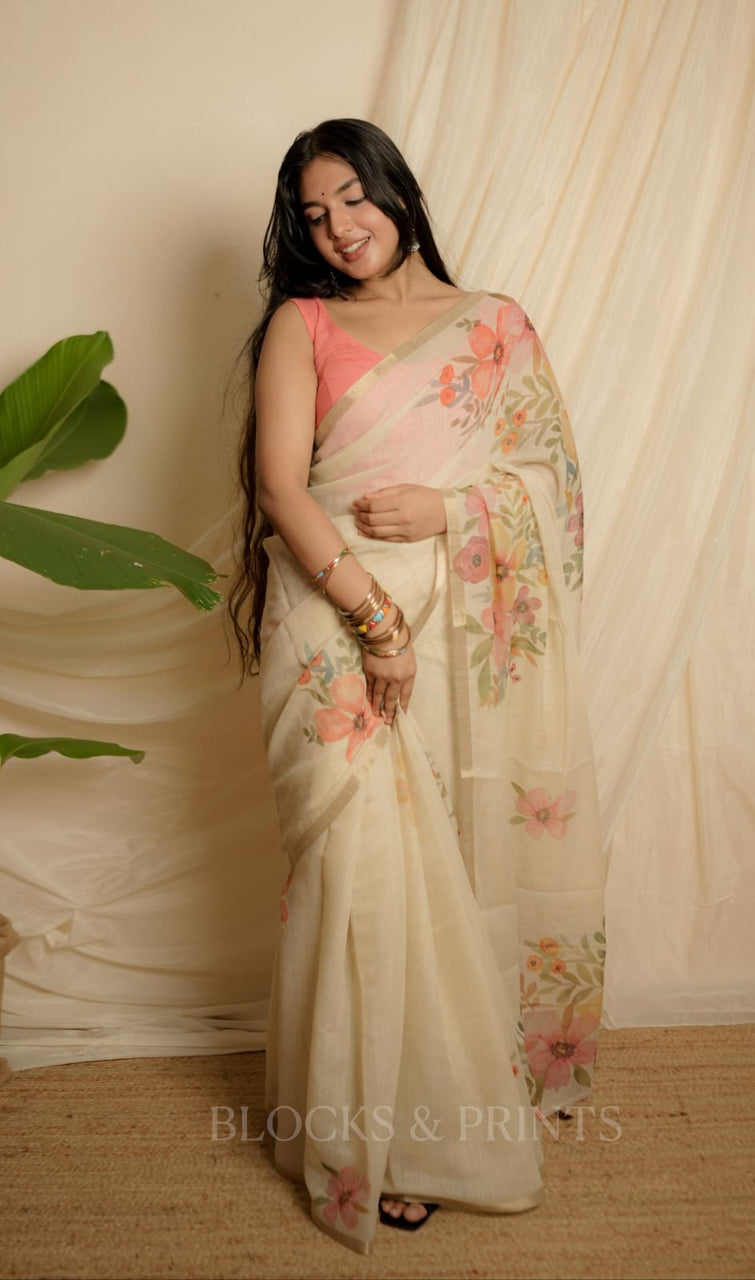 Soft Semi Linen Saree with designer Floral Print.