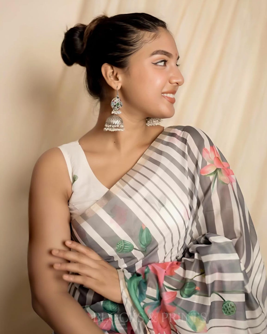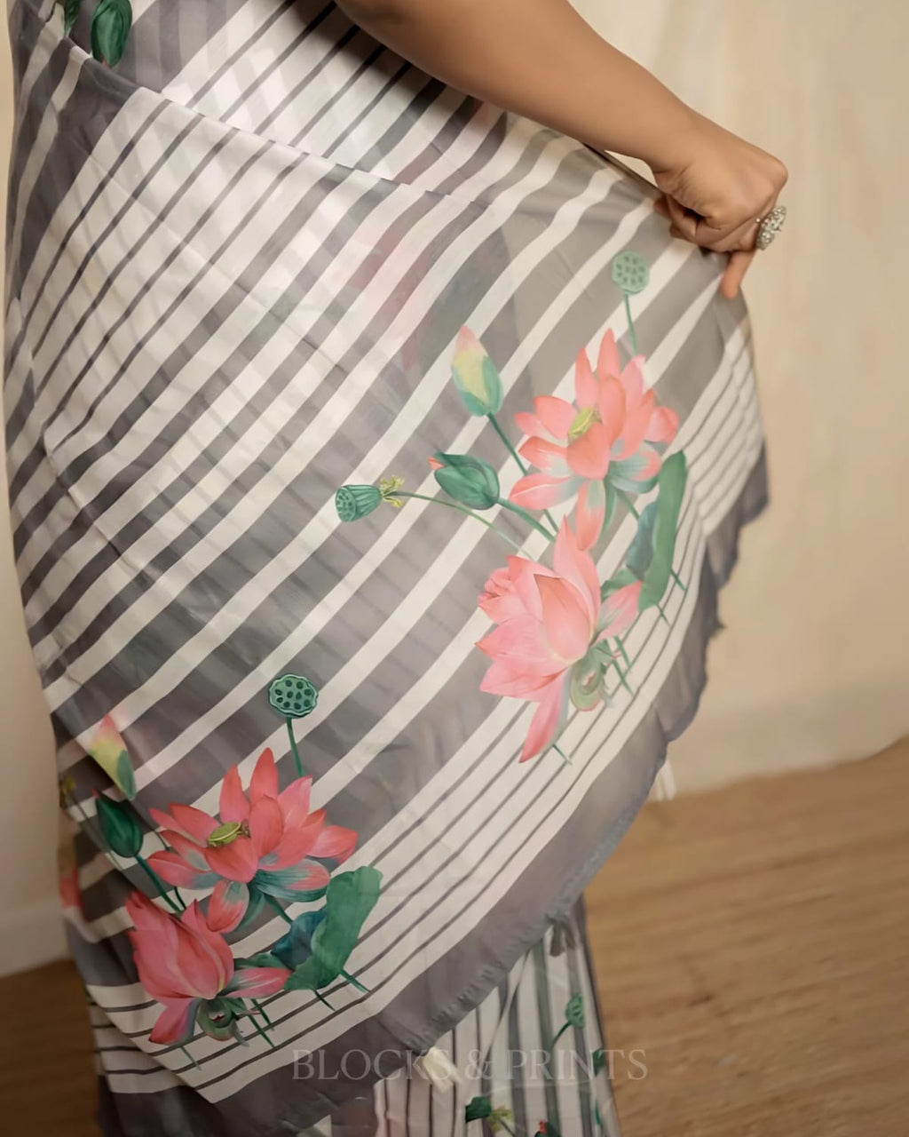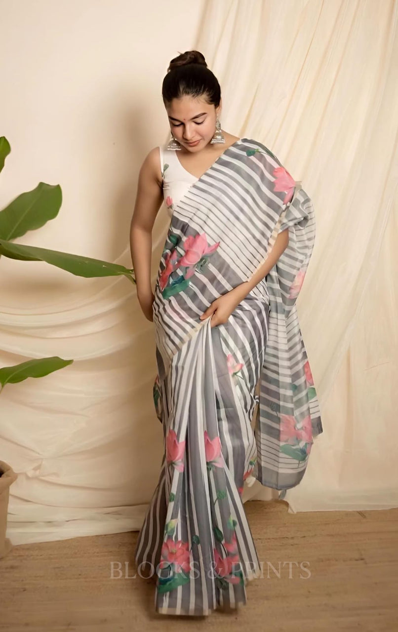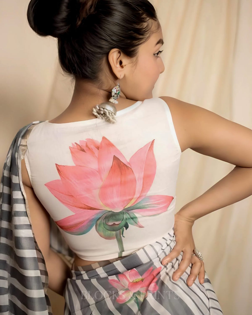 Blouse :- Chanderi Silk with Lotus Print in White color (Unstitched) as seen in the pic