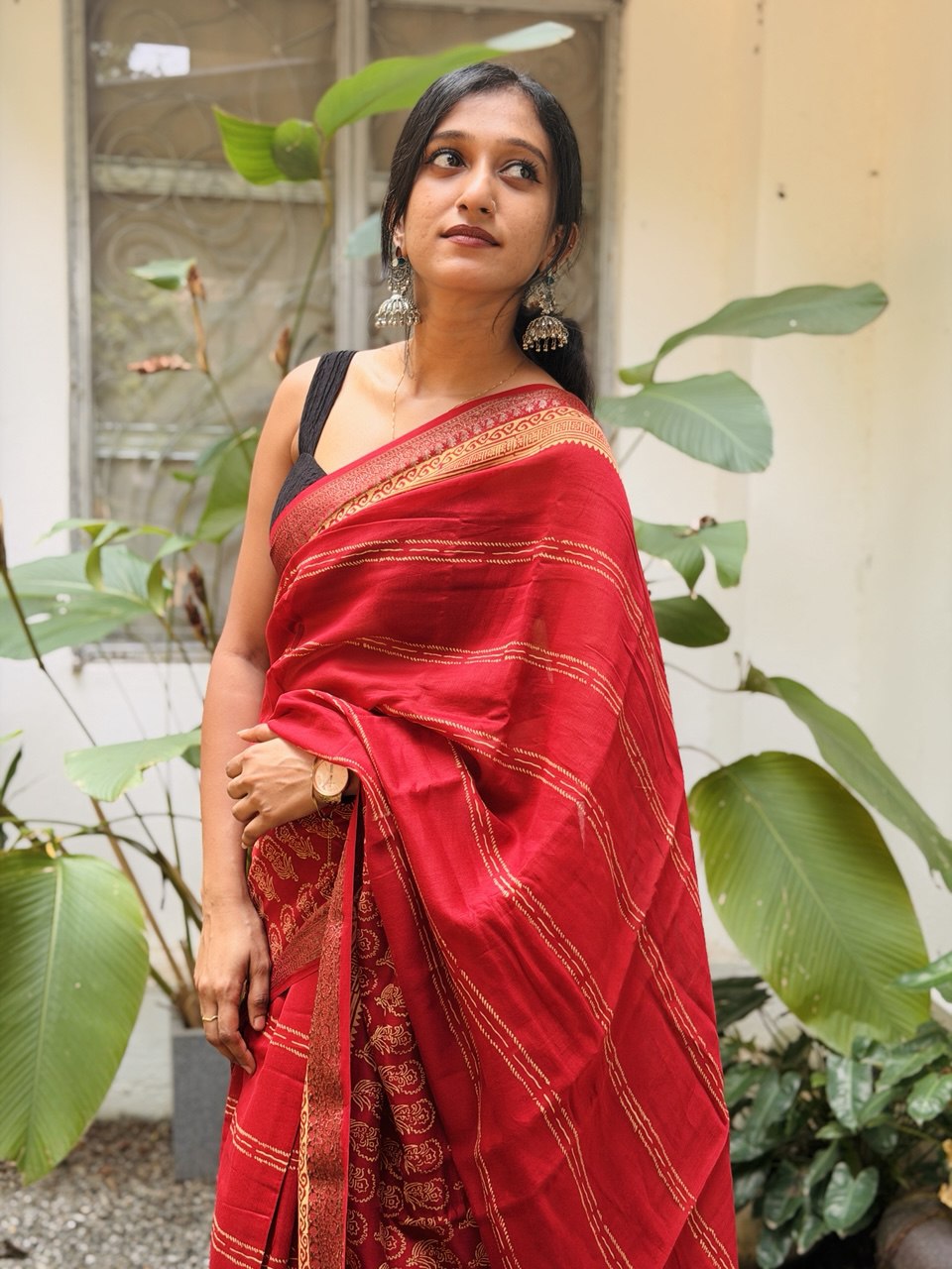 Chanderi silk saree with Banarasi Border