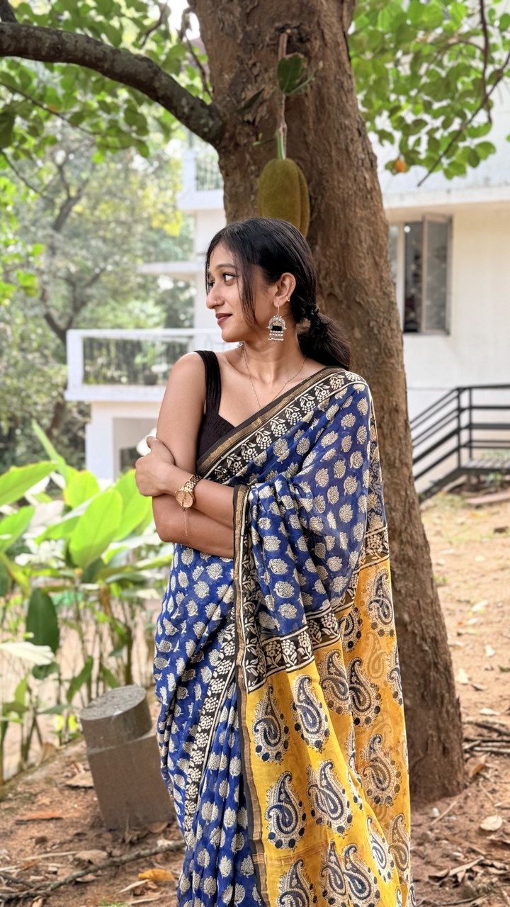 Designer print on Chanderi Silk Saree .