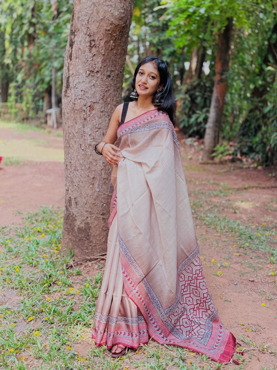 Printed Chanderi Silk Saree with Border
