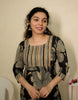 Top - Printed Cotton Slit Top with Round Neck, Stripe Printed Patch on Yoke and Sleeves End. Buttons For Detailing on Yoke.