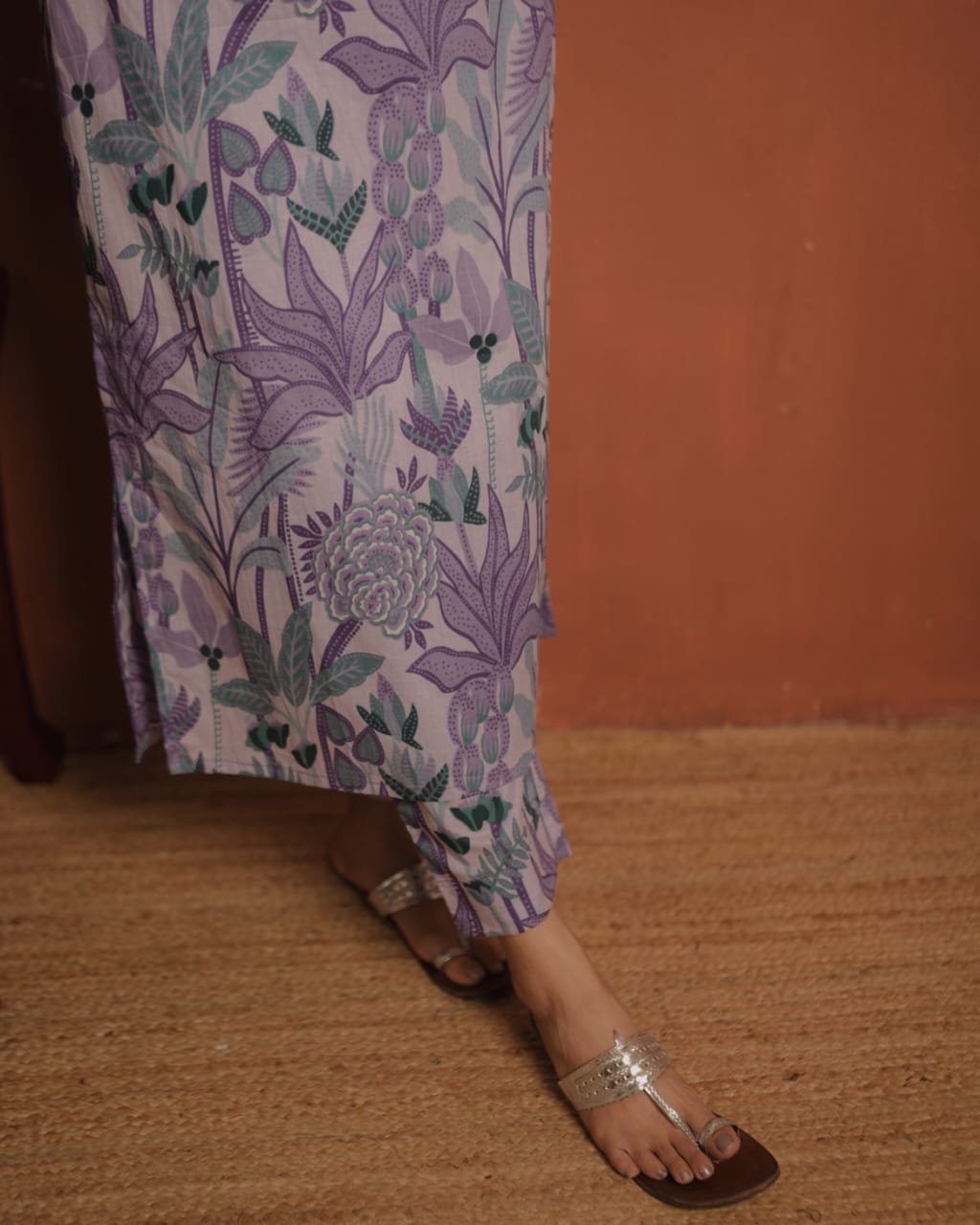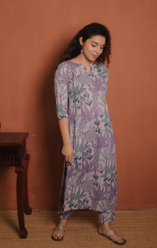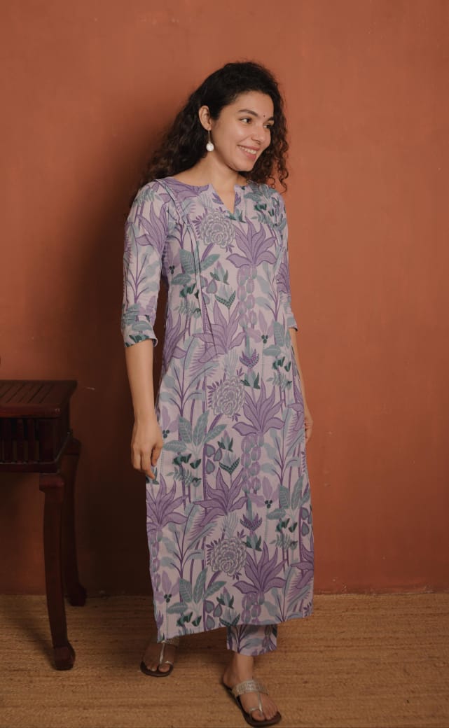 Bottom- Printed Cotton Staright Pants.