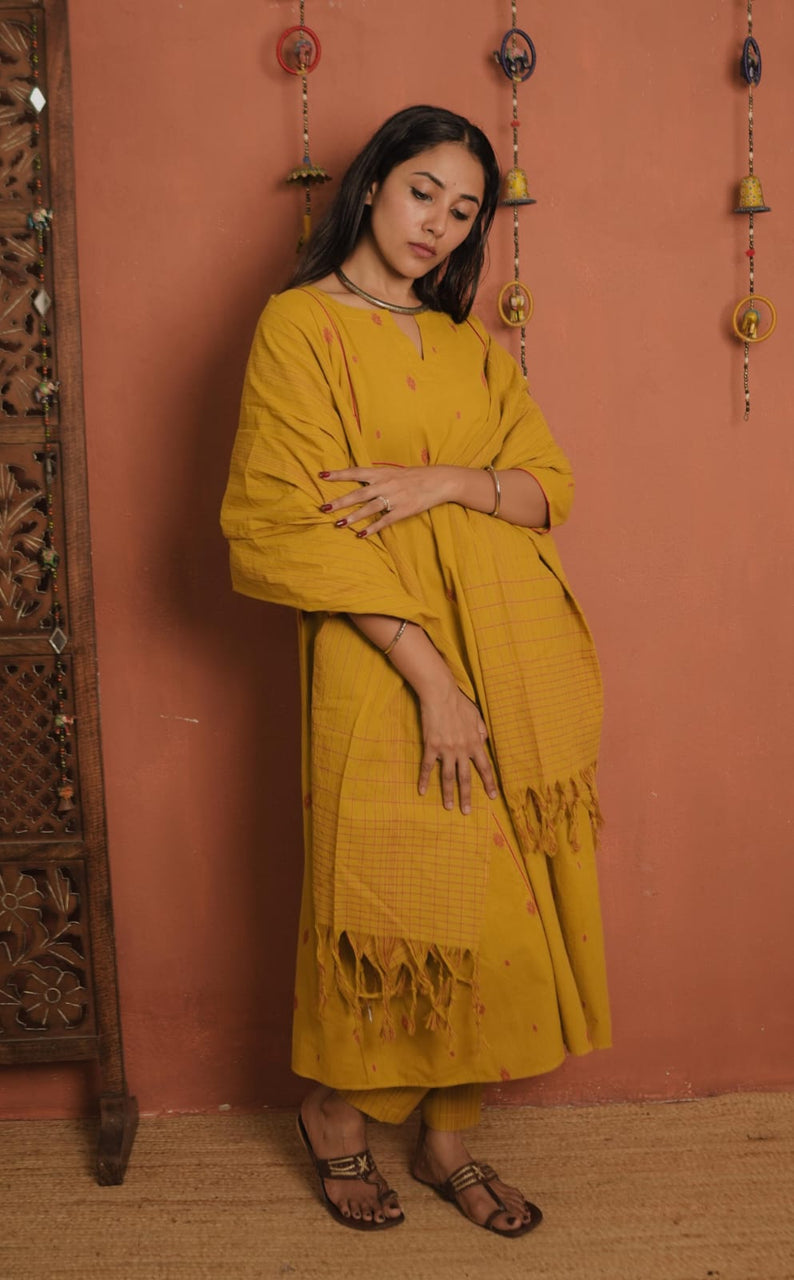 Handloom Cotton Top, Bottom & Dupatta Set