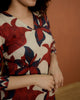 Top - Tropical Printed Cotton slit top with V Neck. Patch on Sleeve.