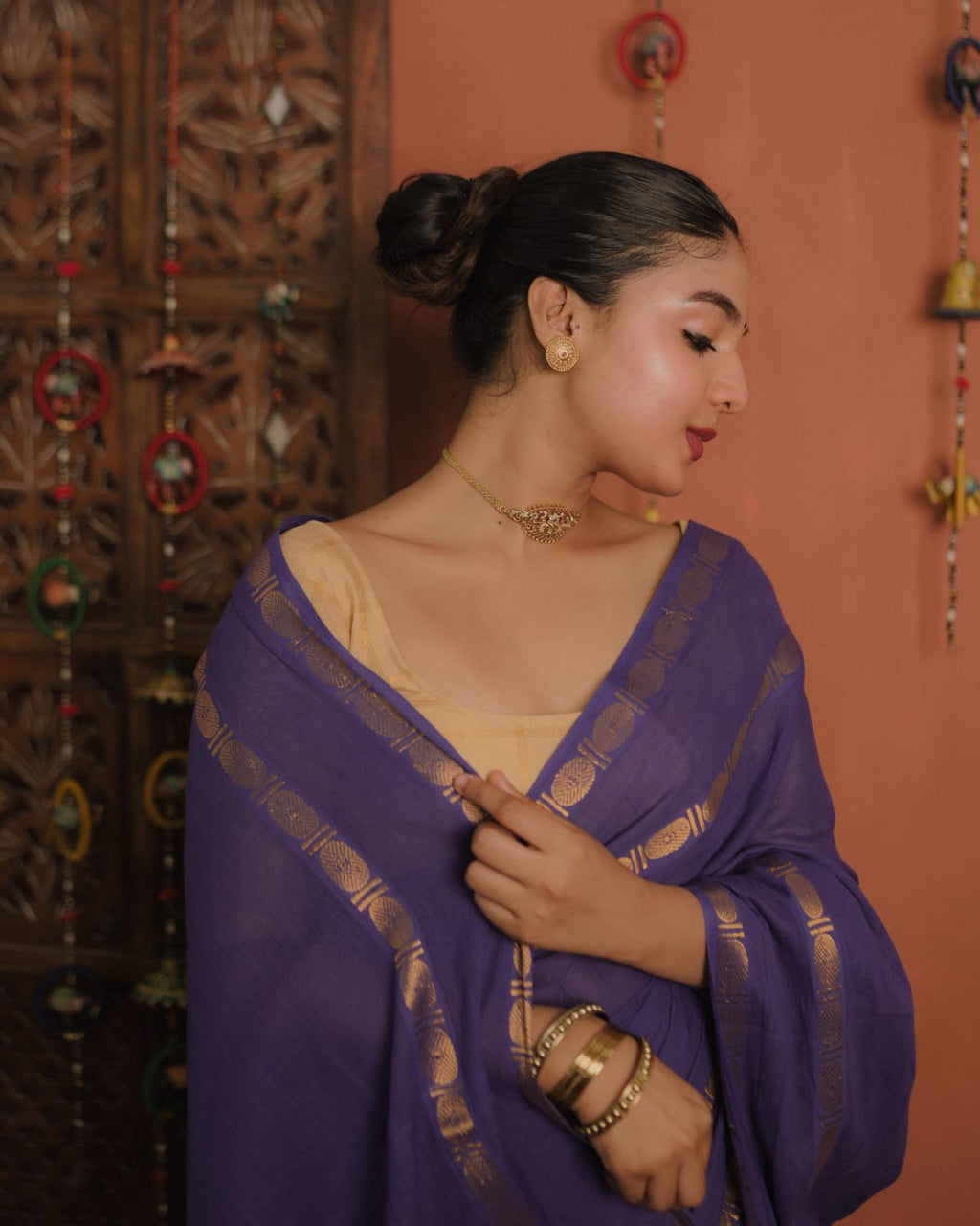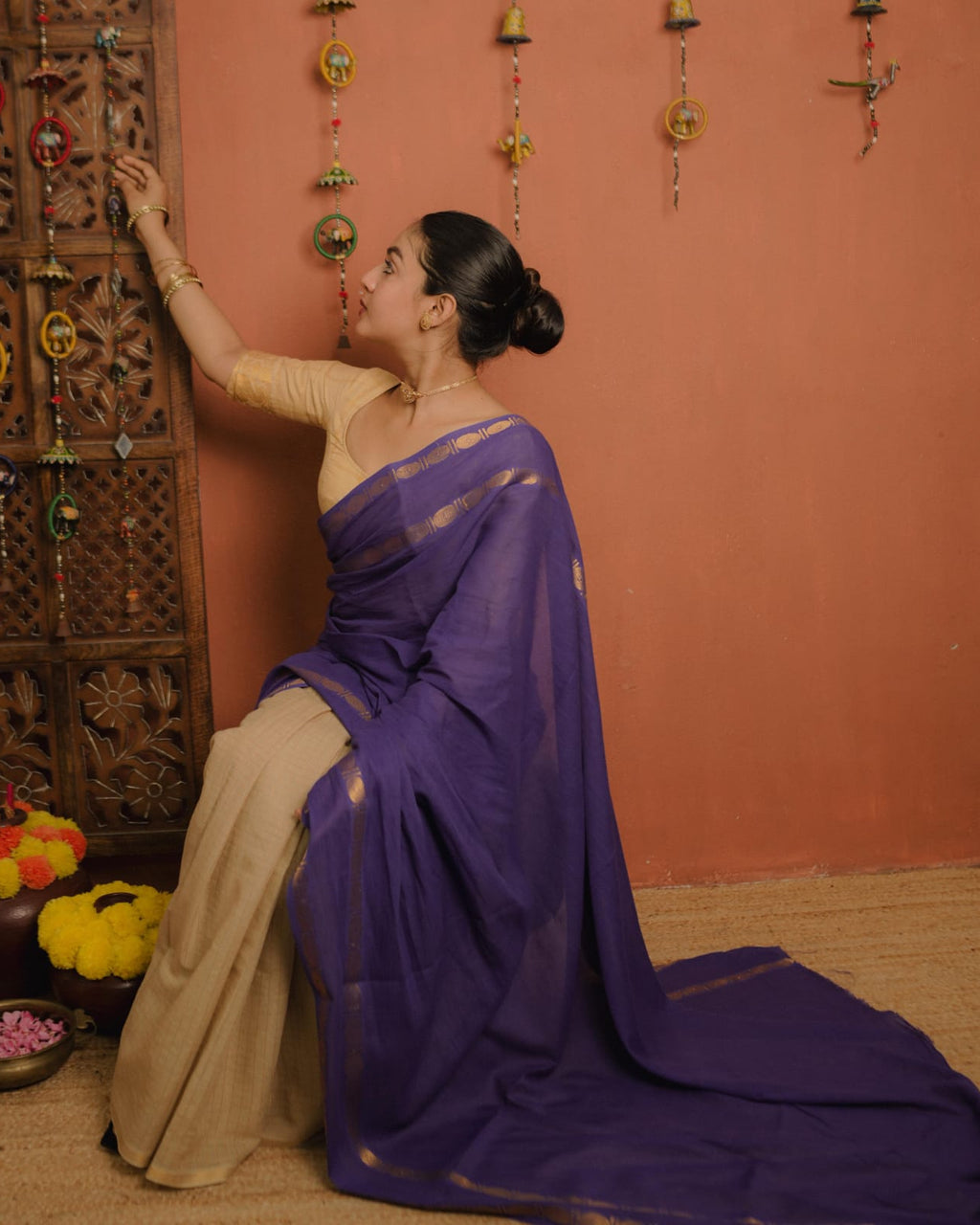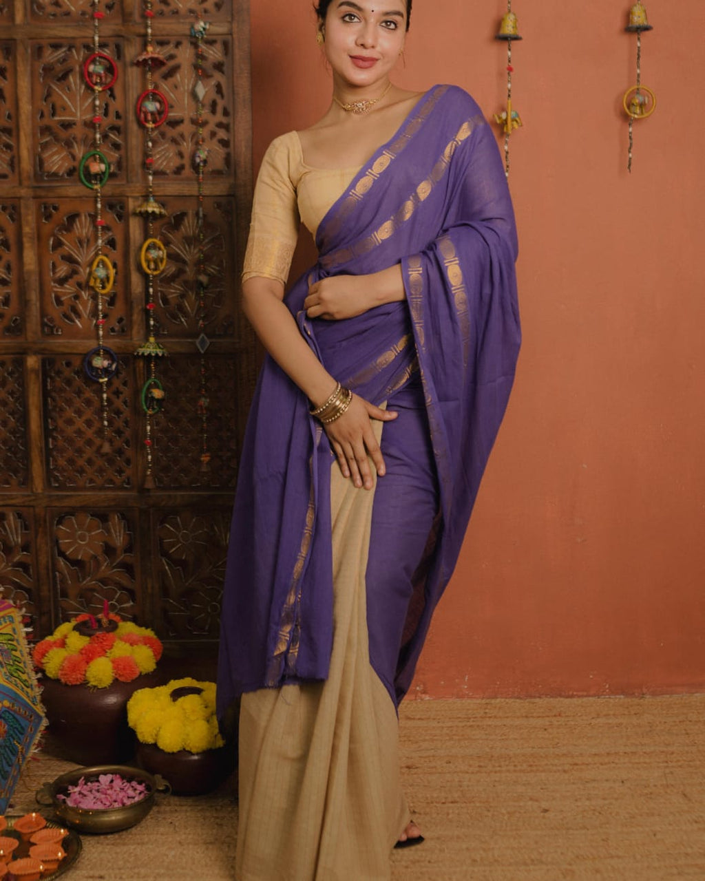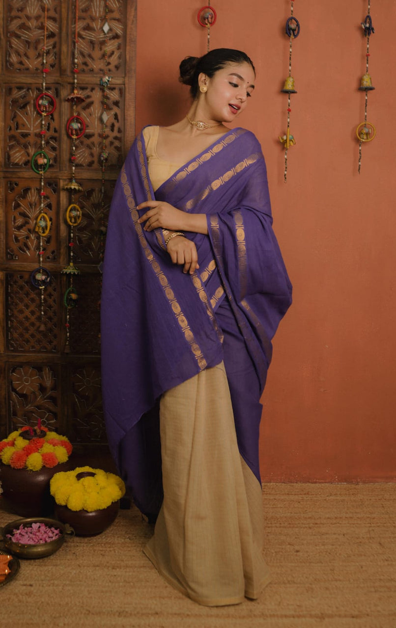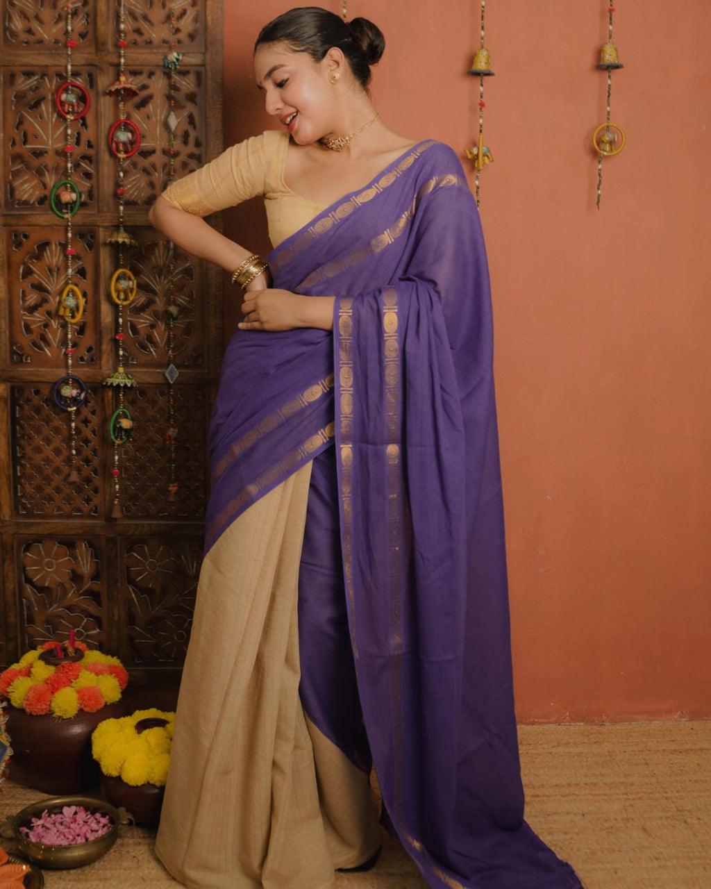 Sungudi Cotton Half and Half Designer Saree. Check weaving on lower part and Jerry kettu Borders on the Upper half