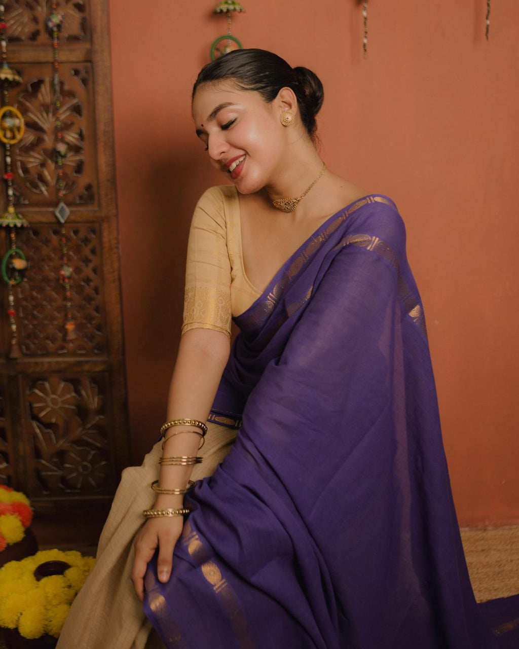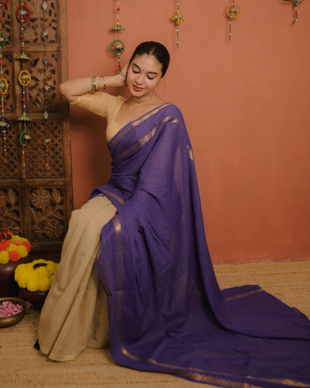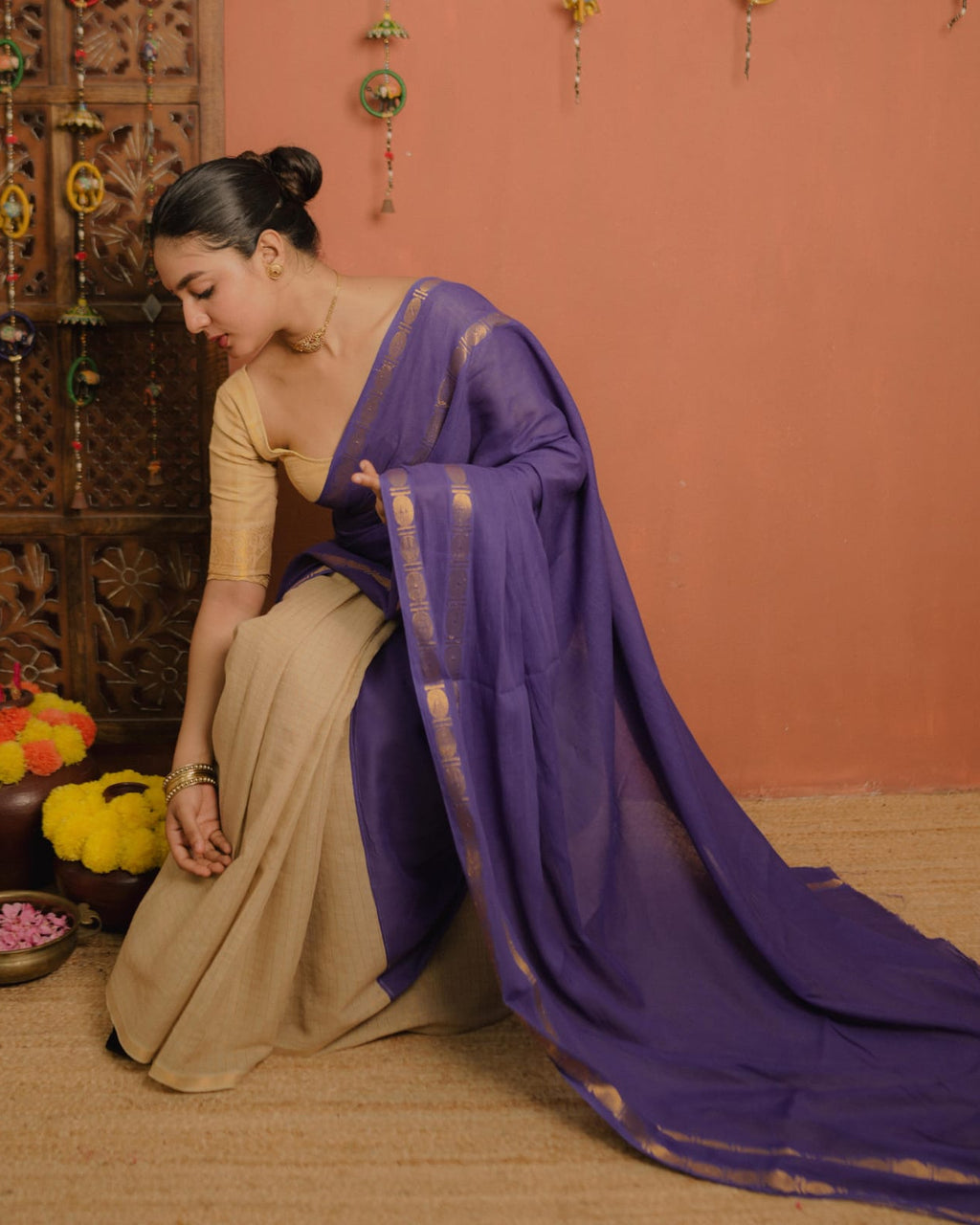 Blouse - Running with Sungudi check cotton in Ivory Color.(Unstitched)