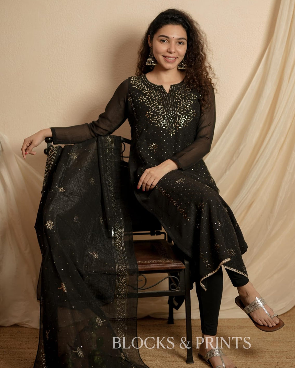 Top - Soft Viscose Organza Slit Kurthi with Slit V neck and Heavy gotta patti Hand work done all over the top. (Stitched with Santoon Lining.)