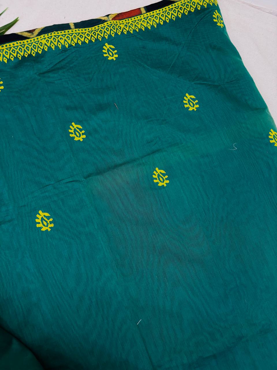 Semi silk  saree with Ajrakh  Patch on Pallu