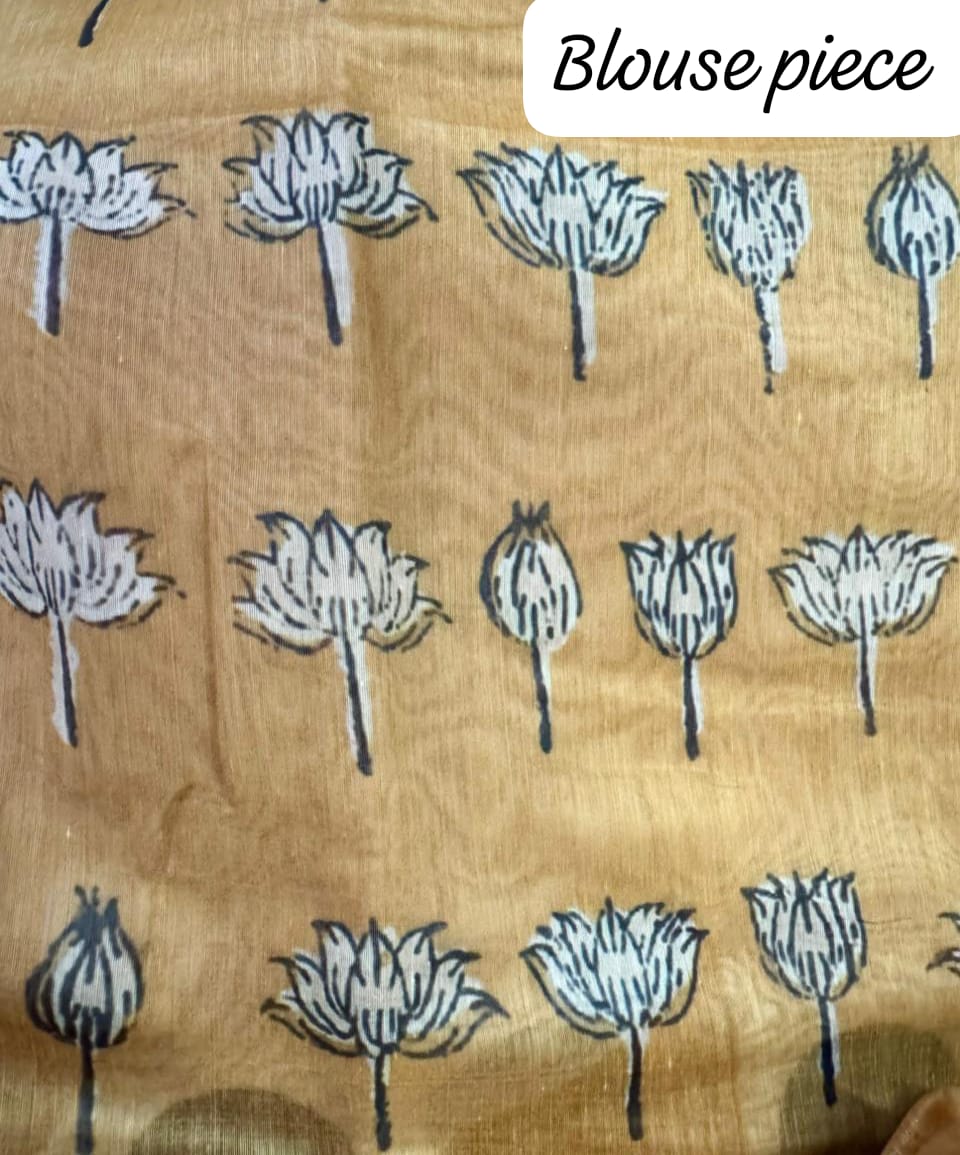 Blouse :- Chanderi Silk with print in Mustard yellow color.(Unstitched)