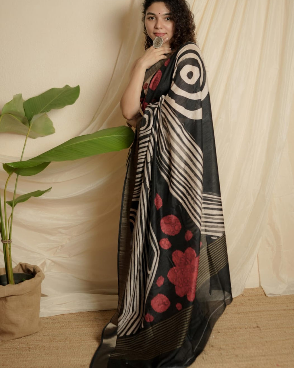Semi Raw Silk Saree with Designer Prints ( Light Weight).