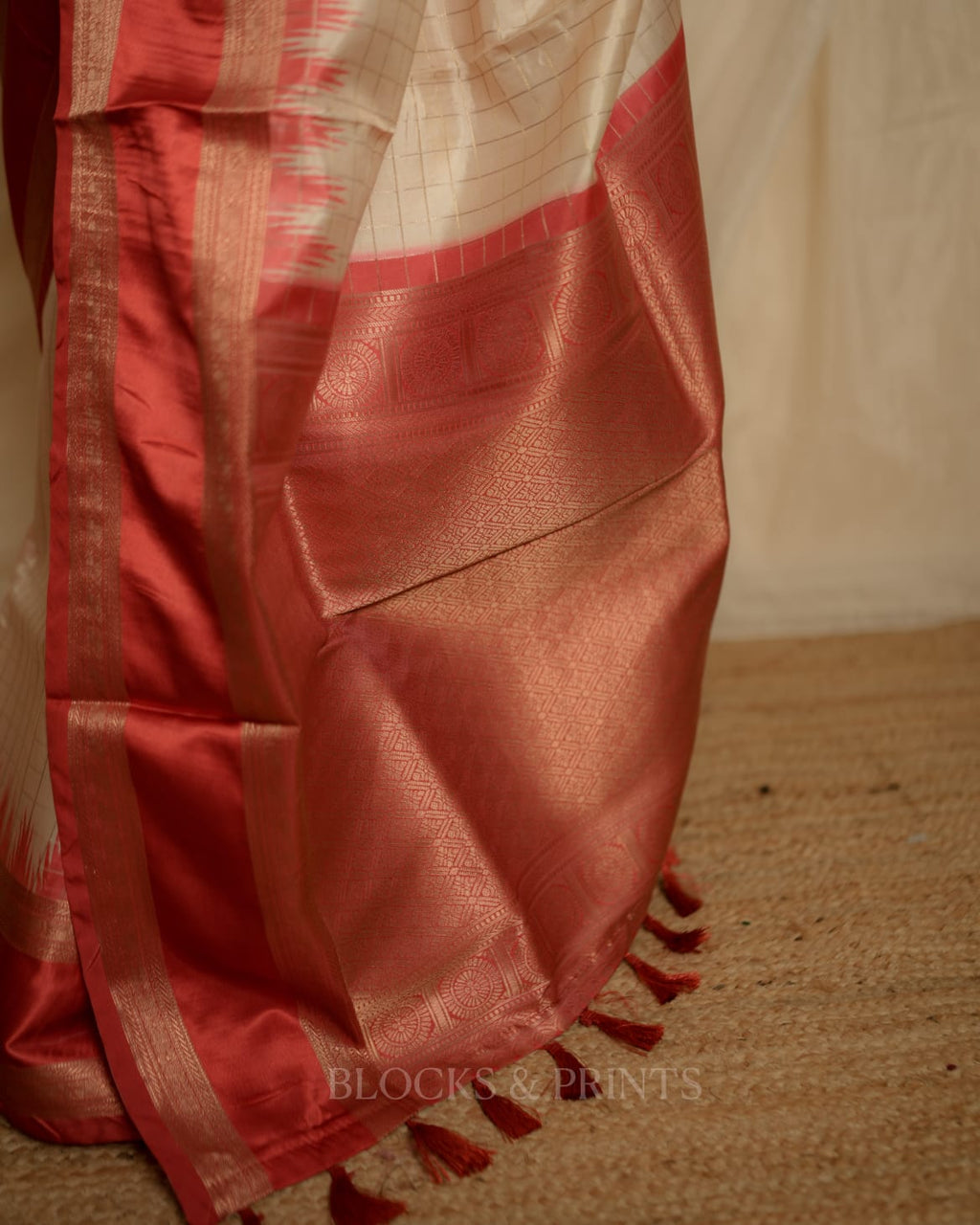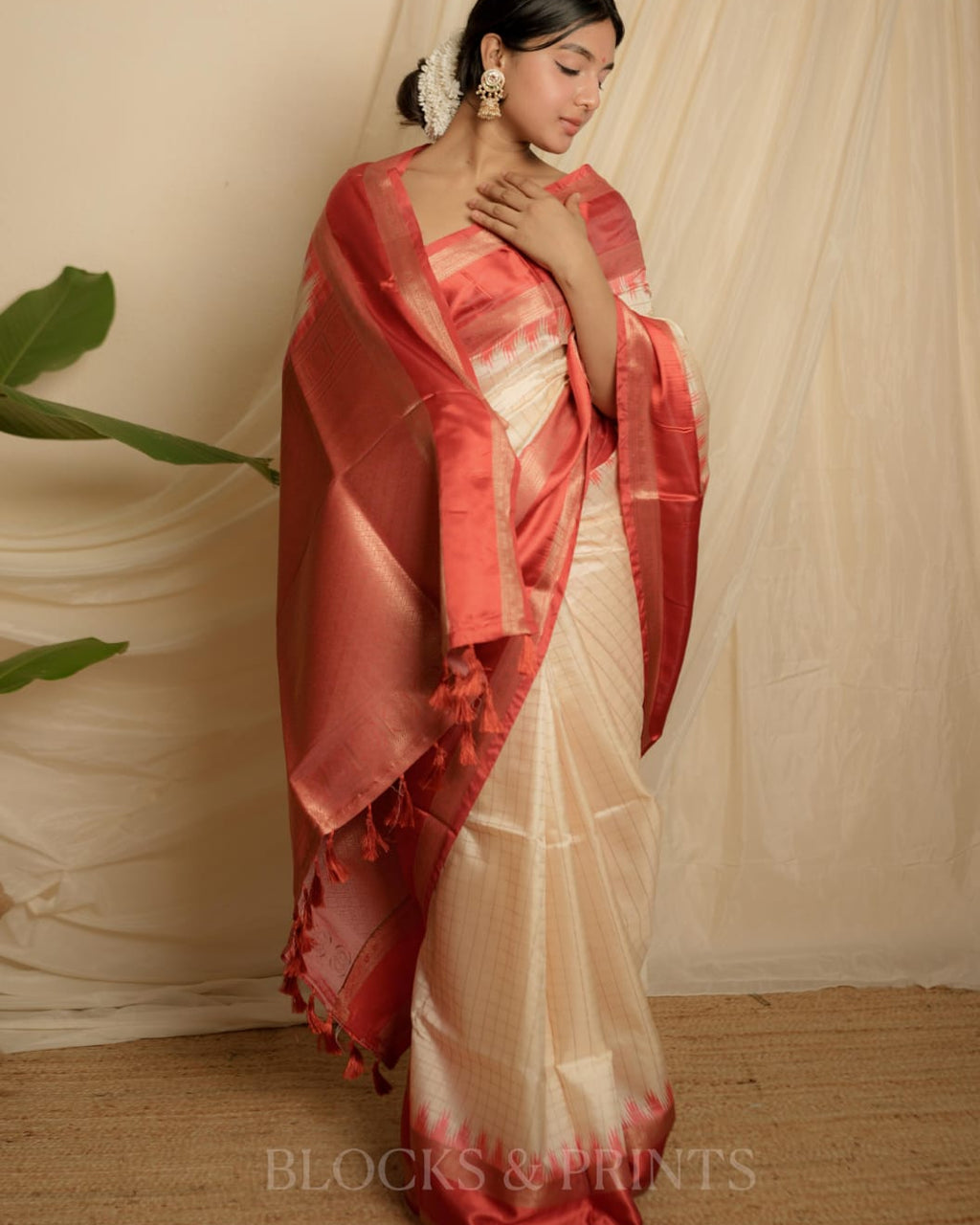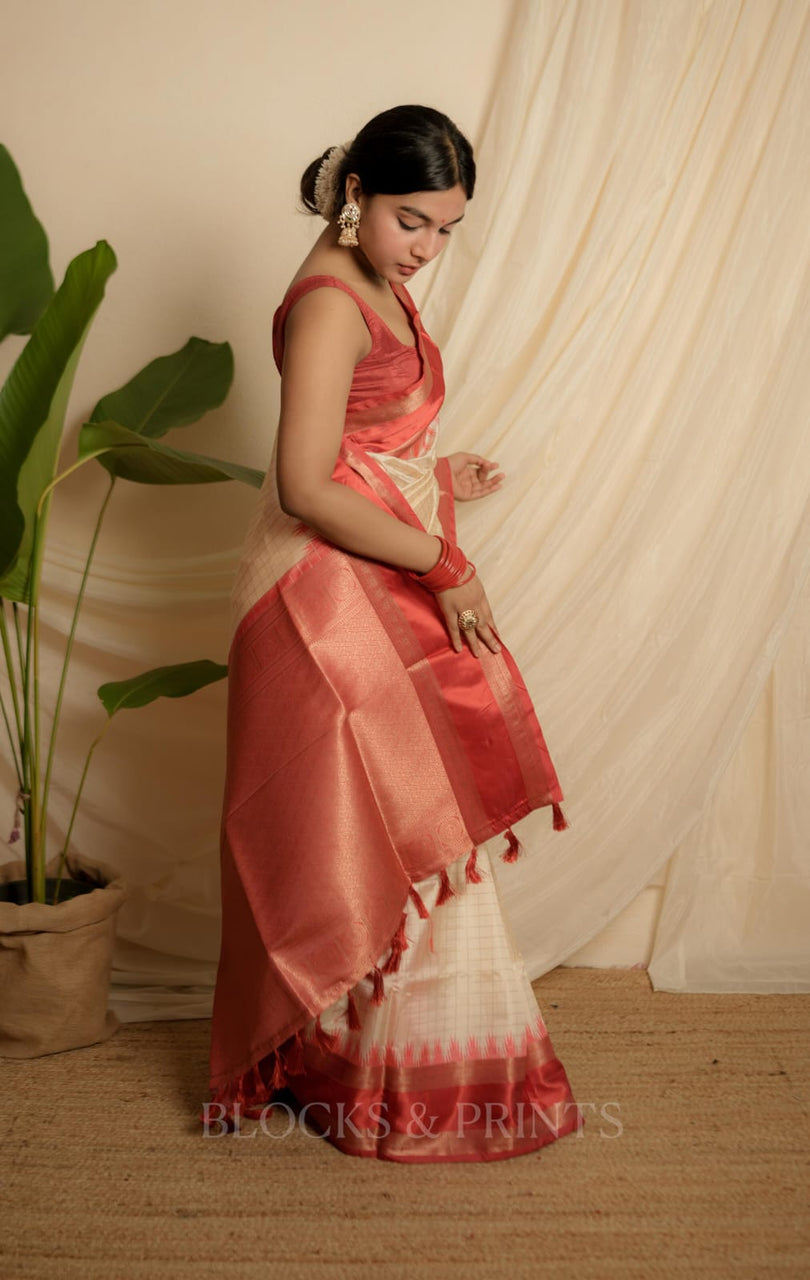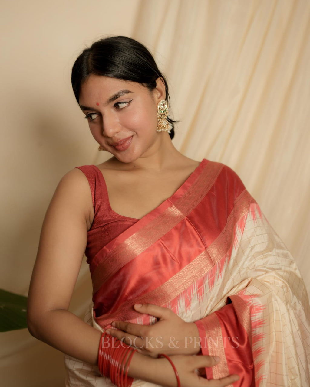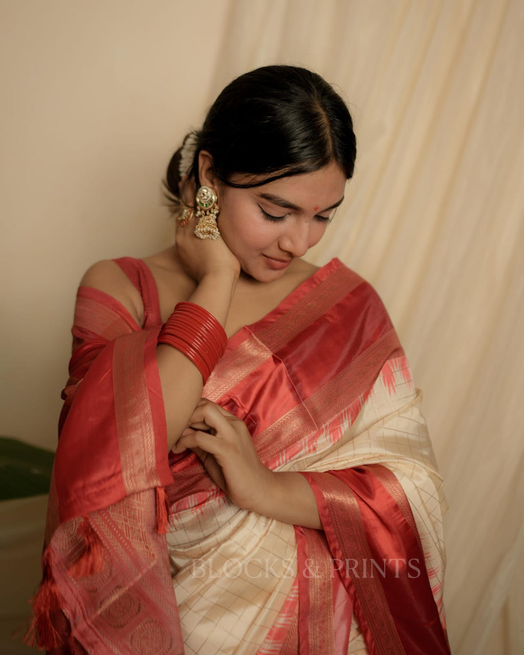 Blouse :- Assam silk in Red with Satin Brocade Borders.