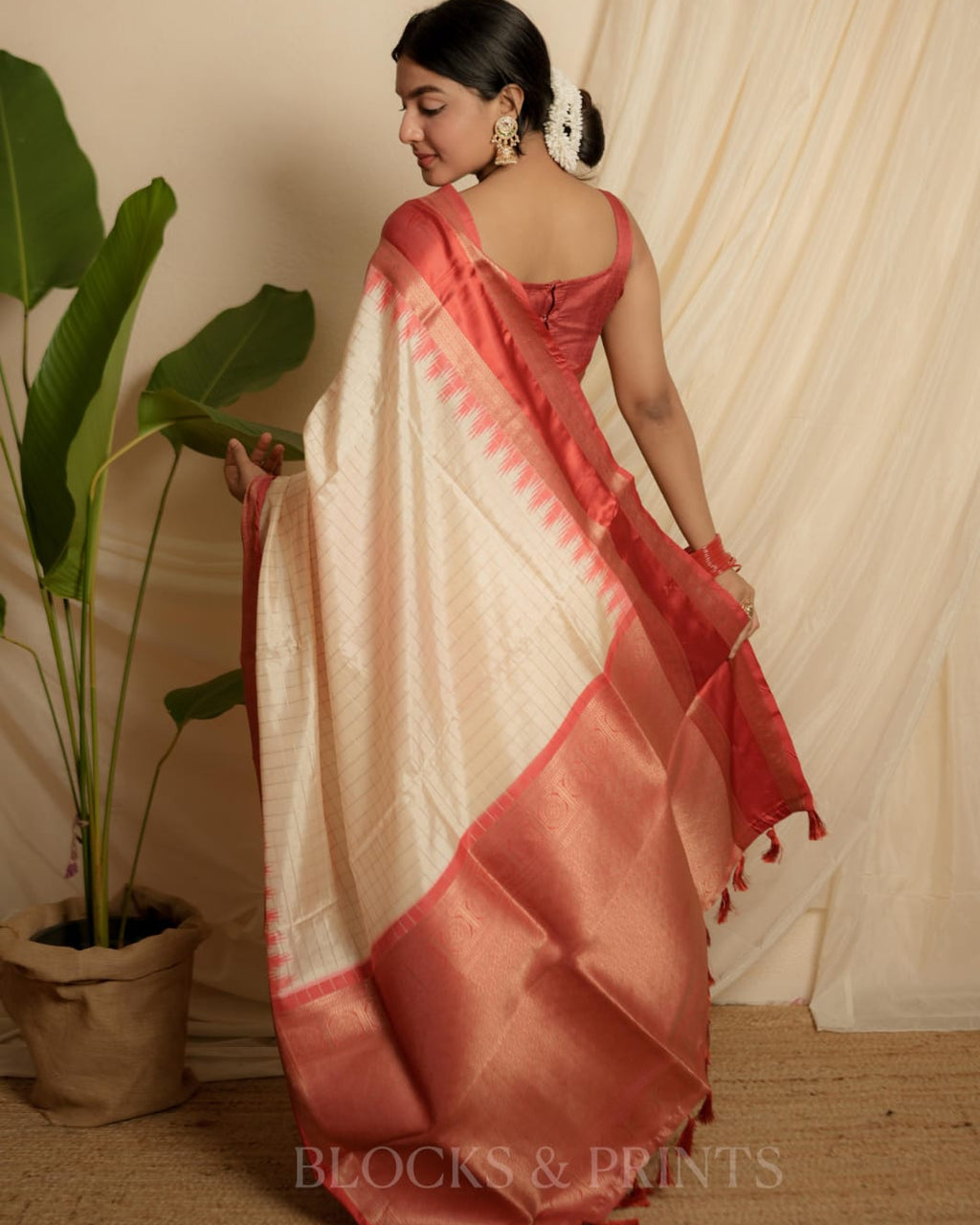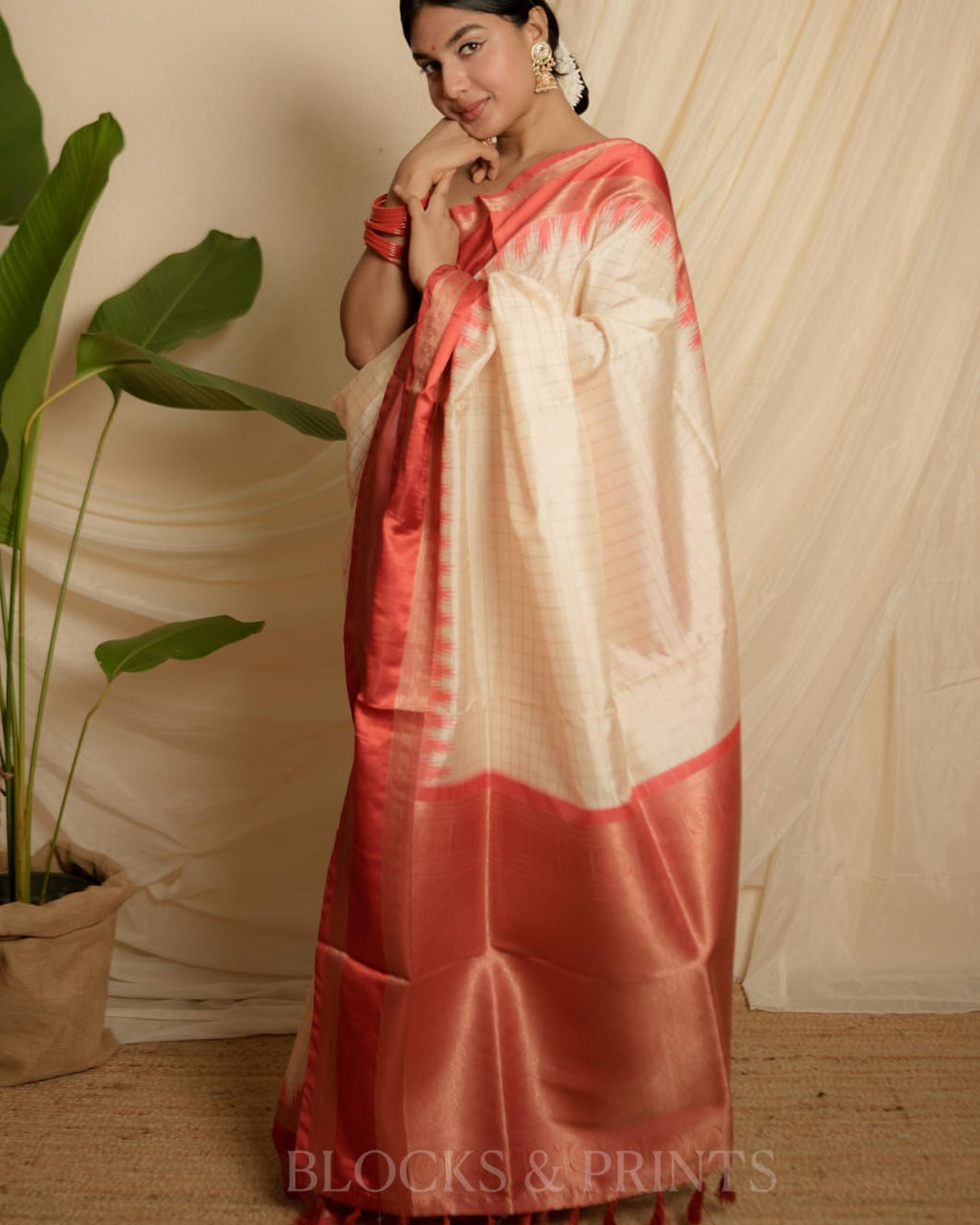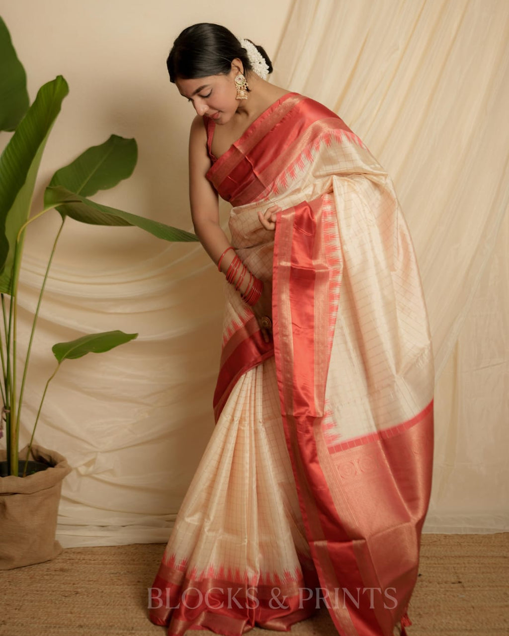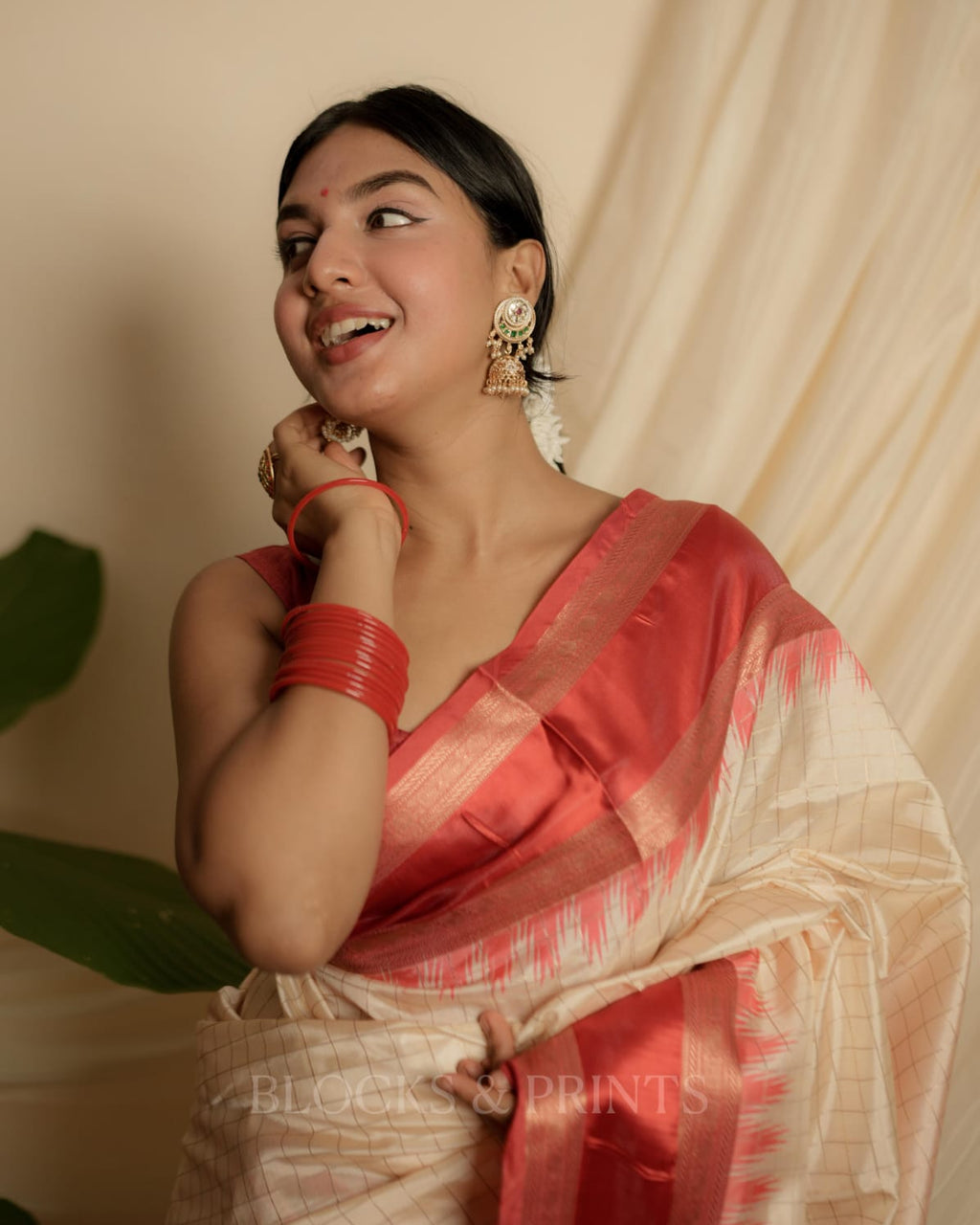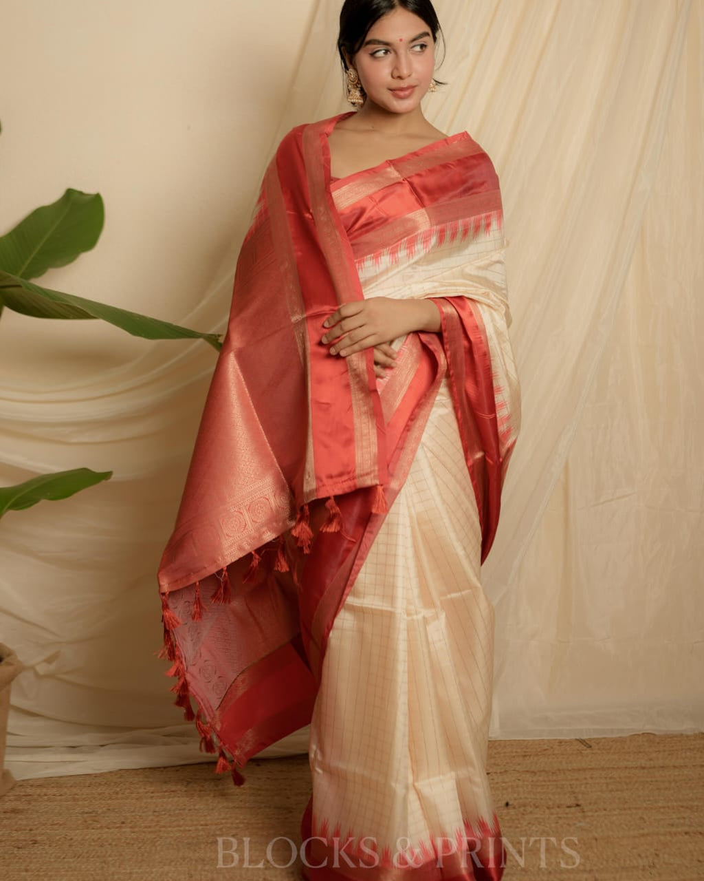 Blouse :- Assam silk in Red with Satin Brocade Borders.