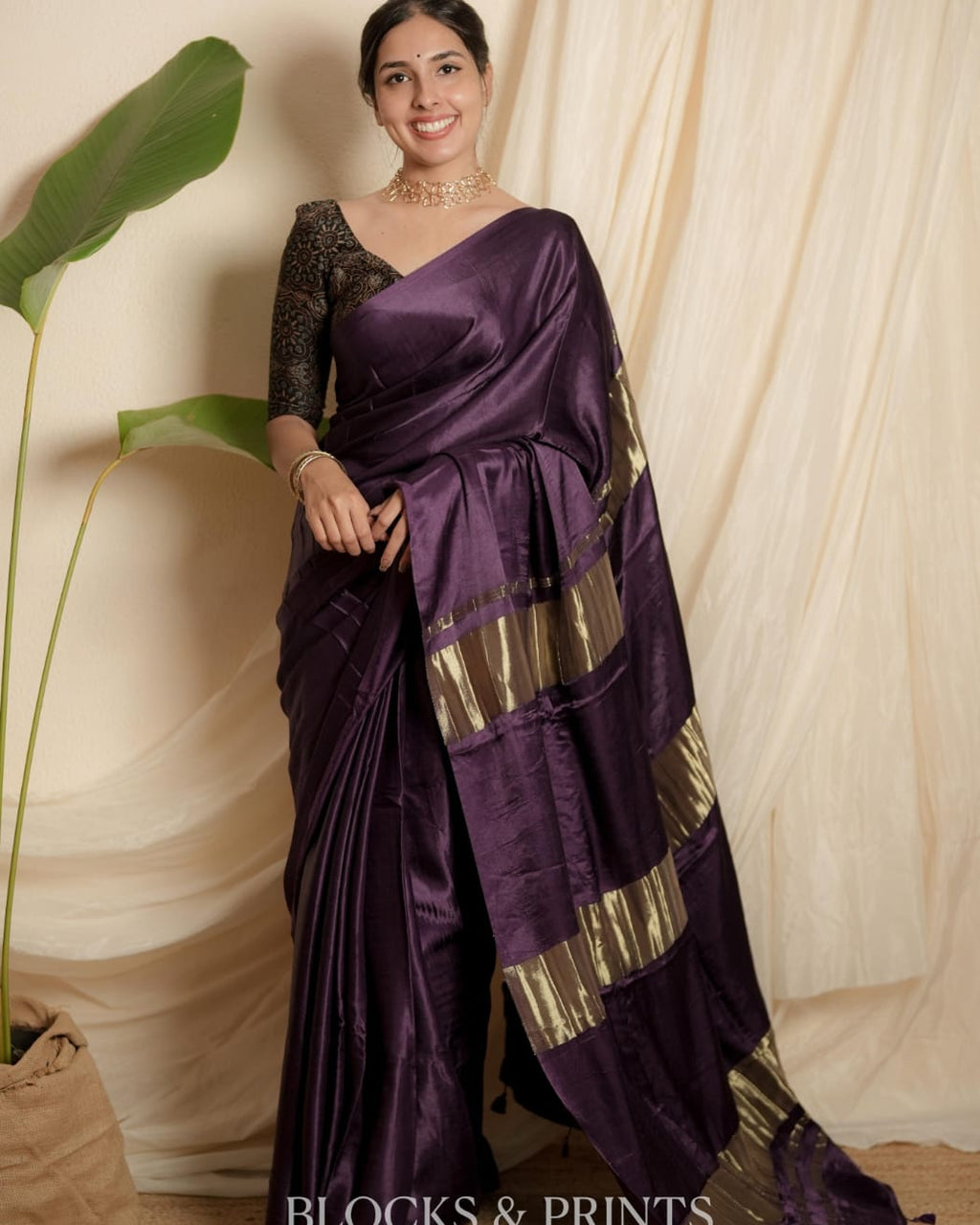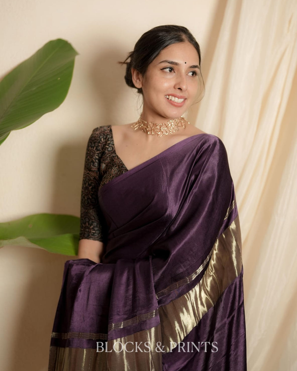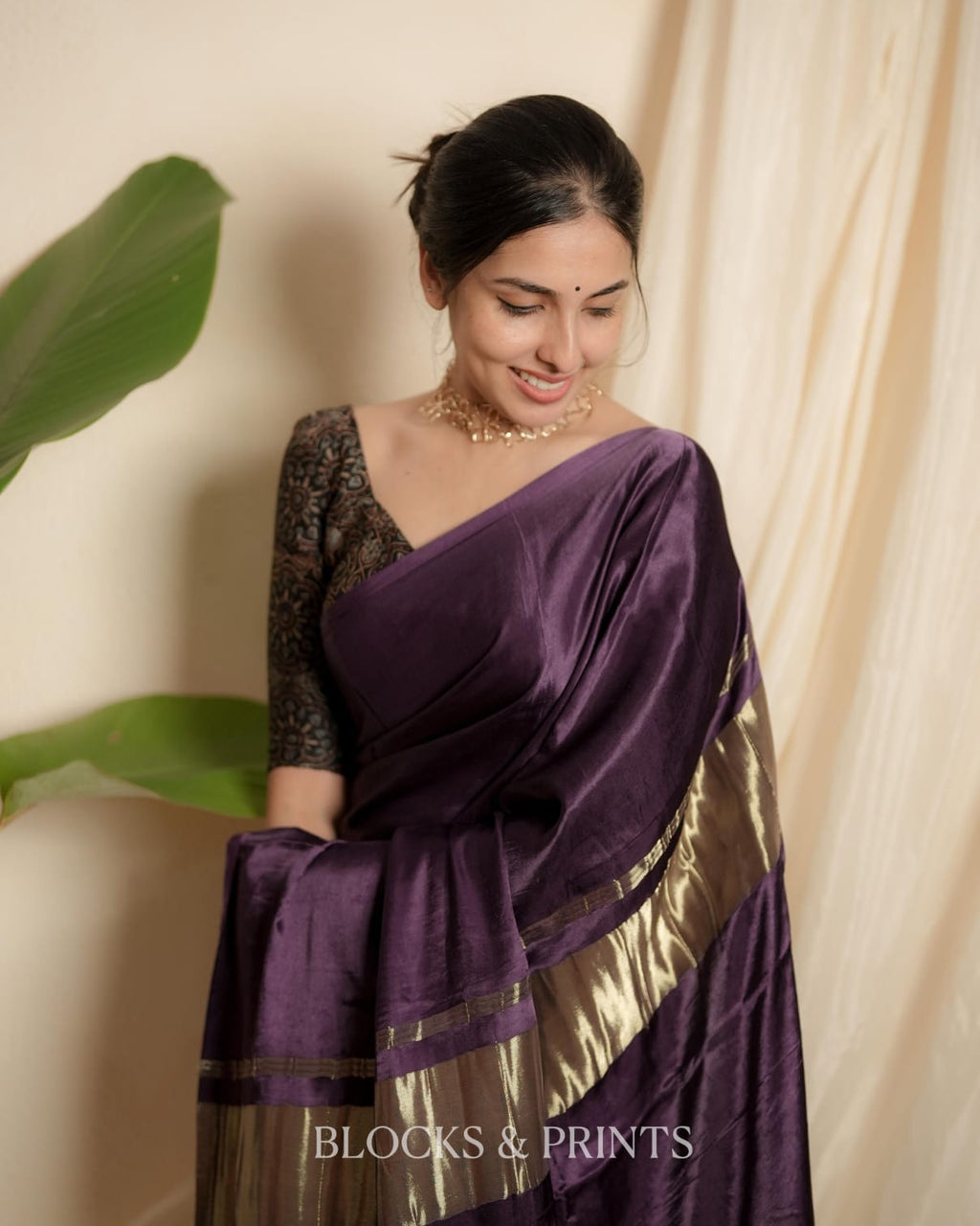 Blouse :- Plain Modal silk in Mulberry Purple.