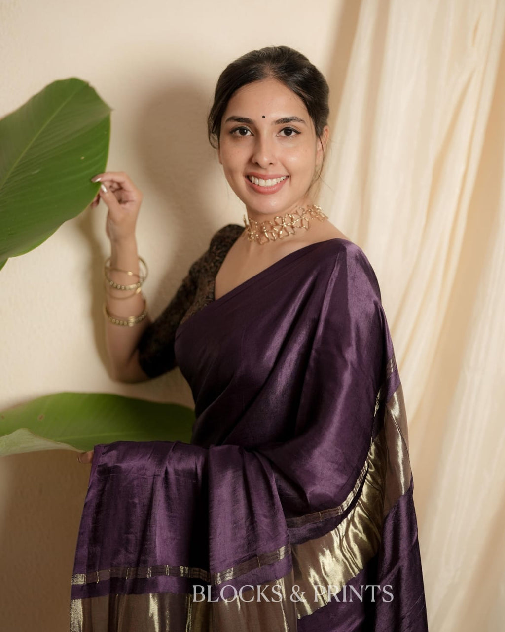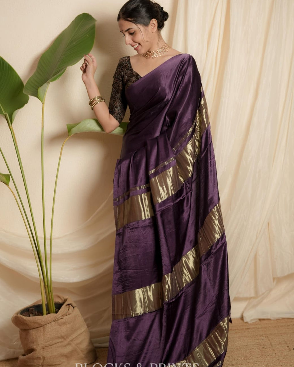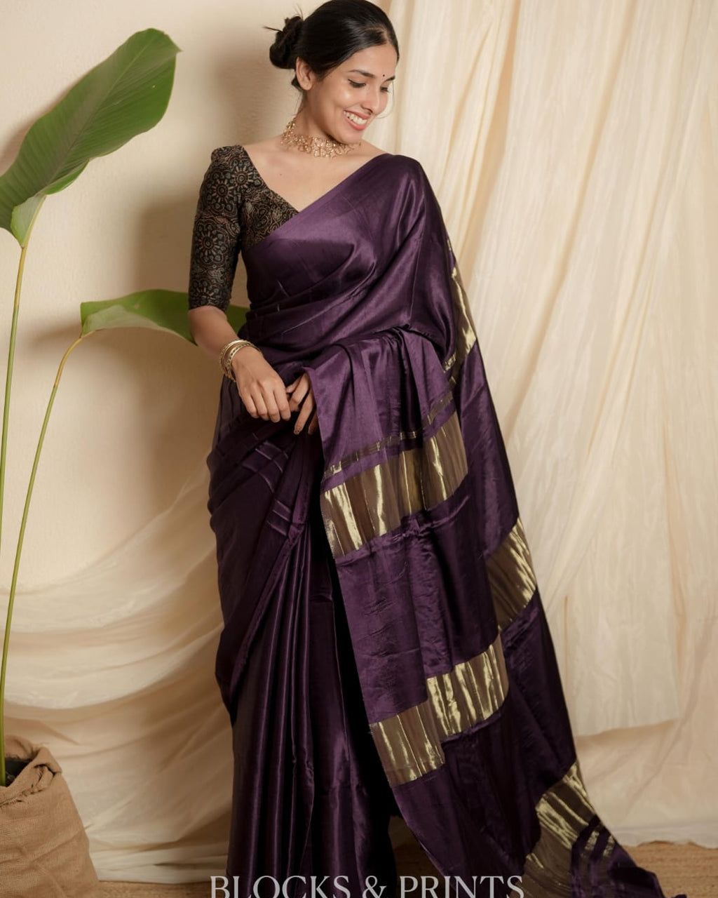 Blouse :- Plain Modal silk in Mulberry Purple.