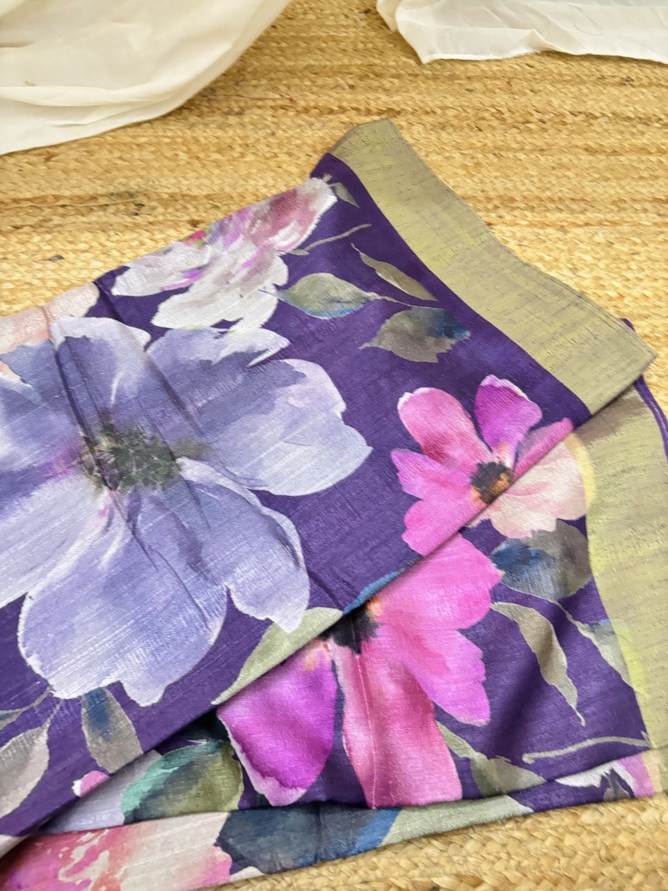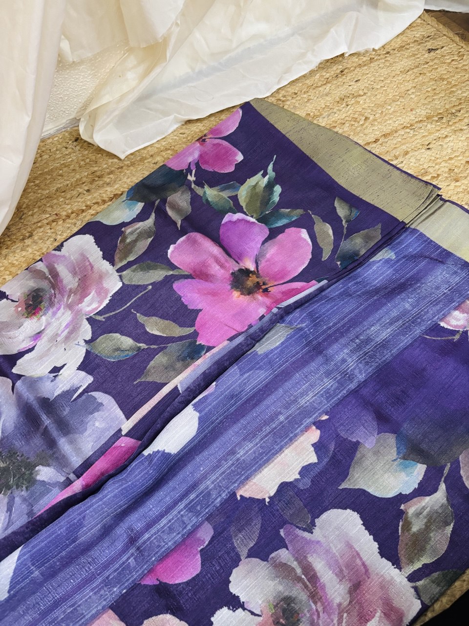 Semi Raw Silk Floral printed Saree with Zeri Woven Border
