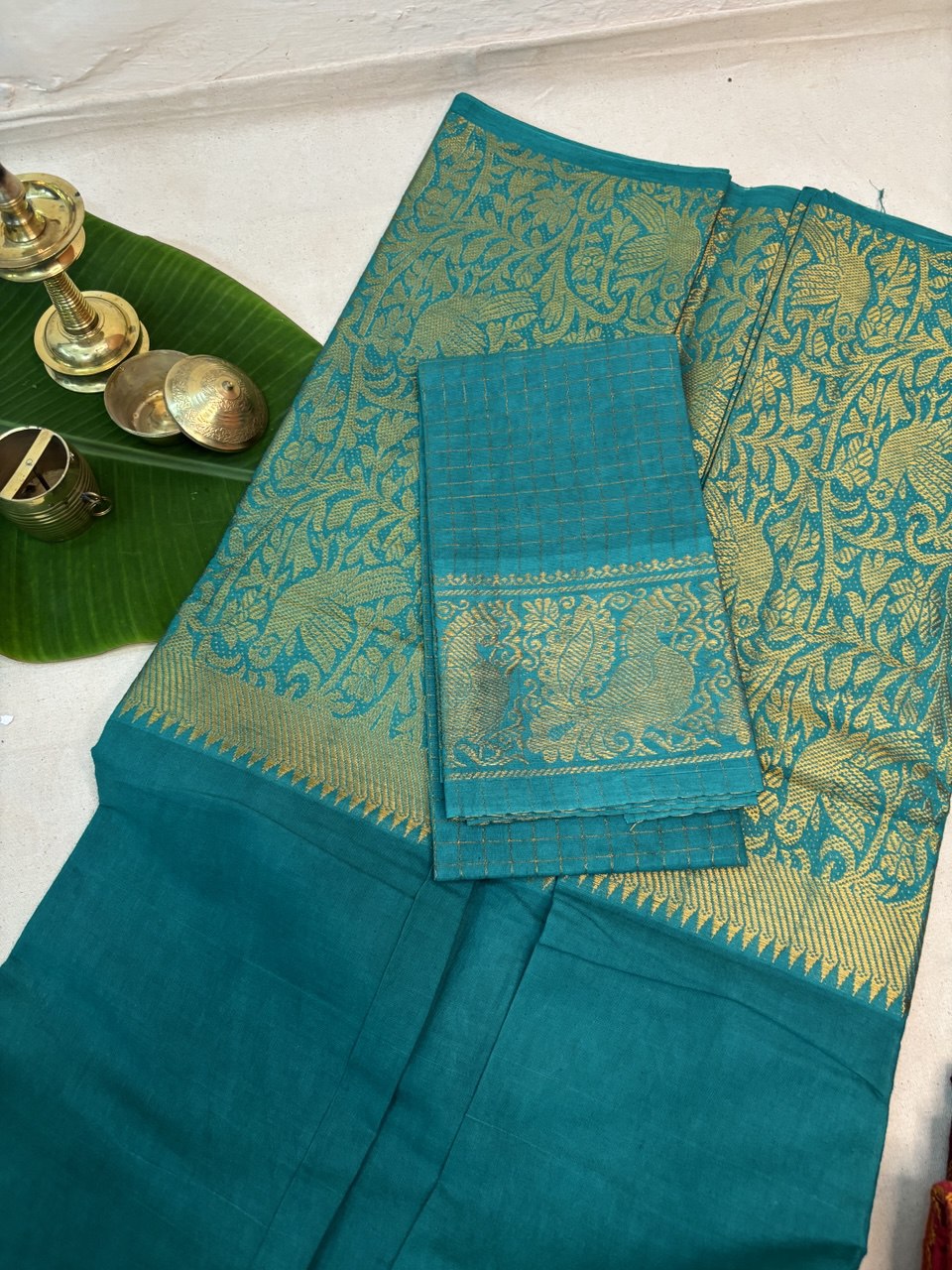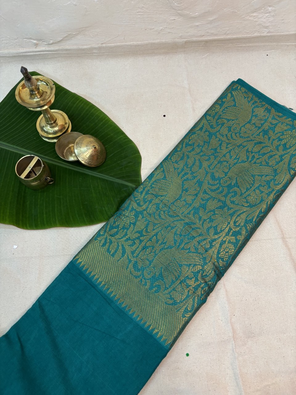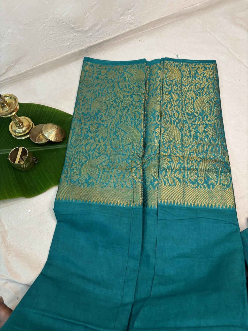 Blouse - Rama Blue with Golden Border  ( Unstitched)