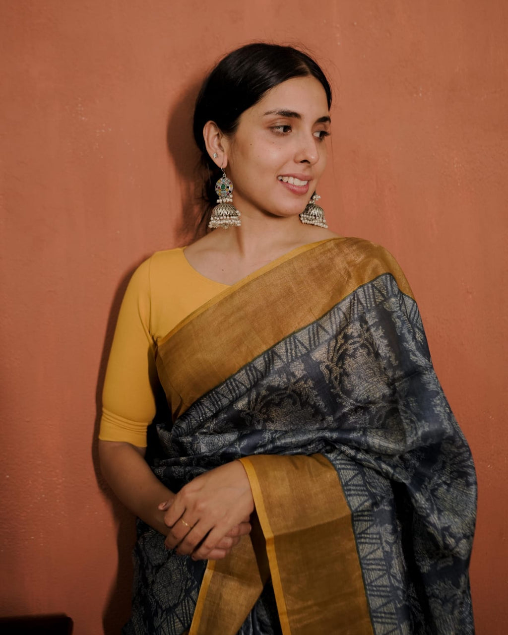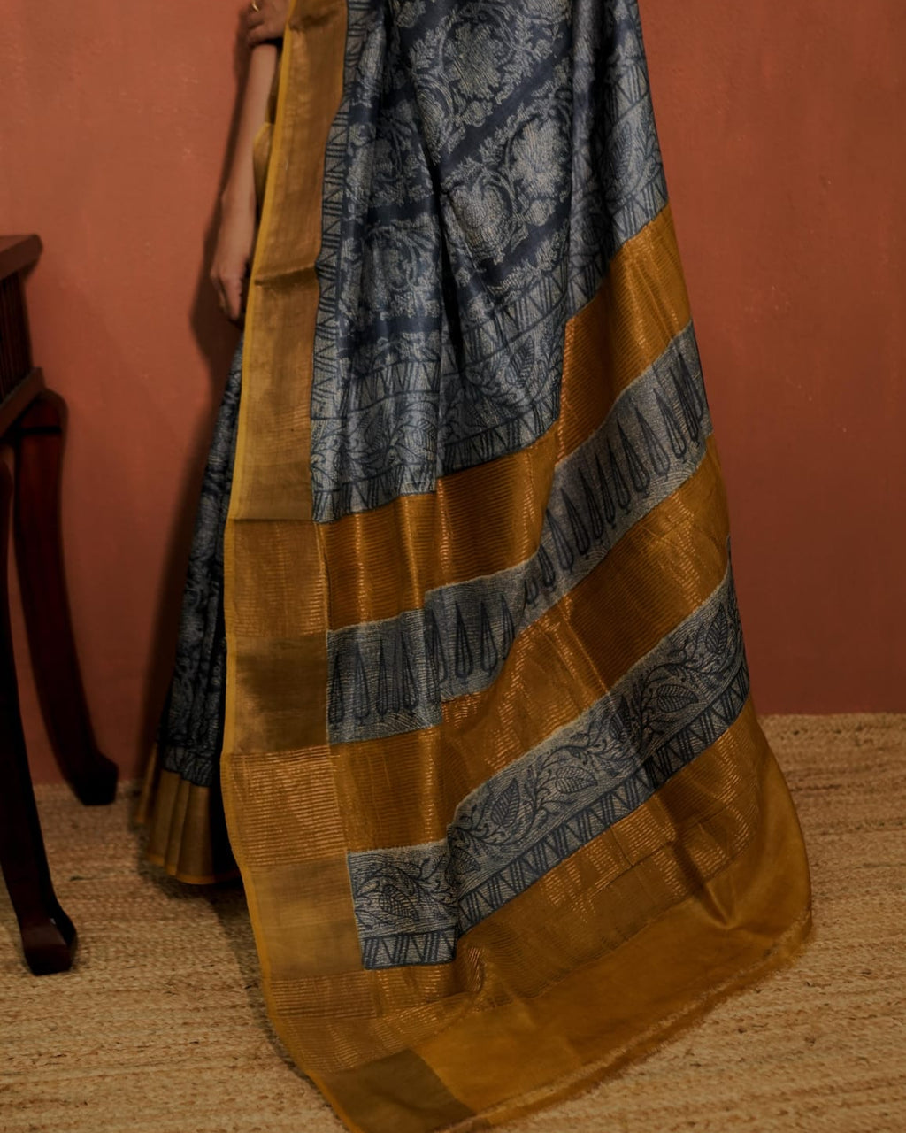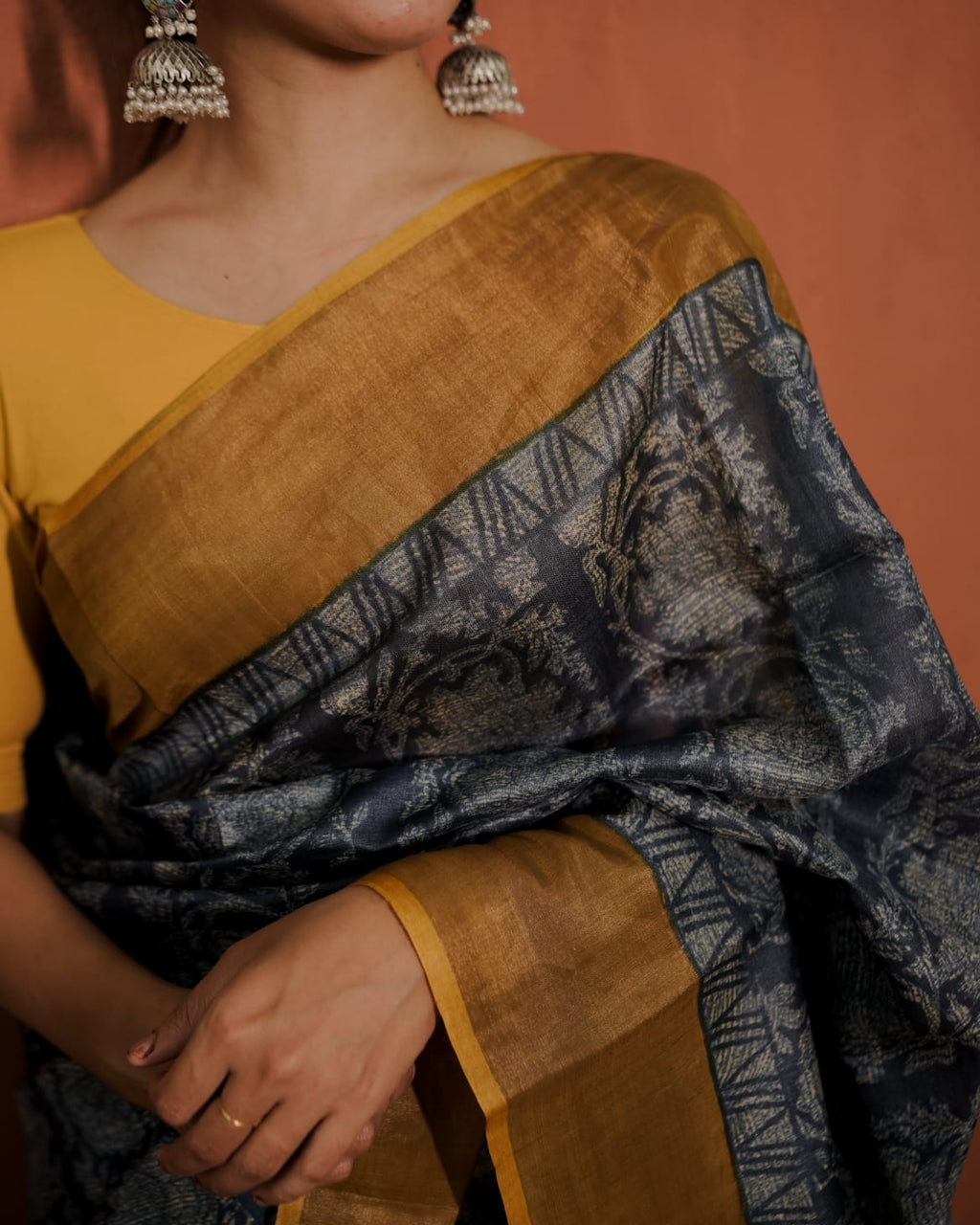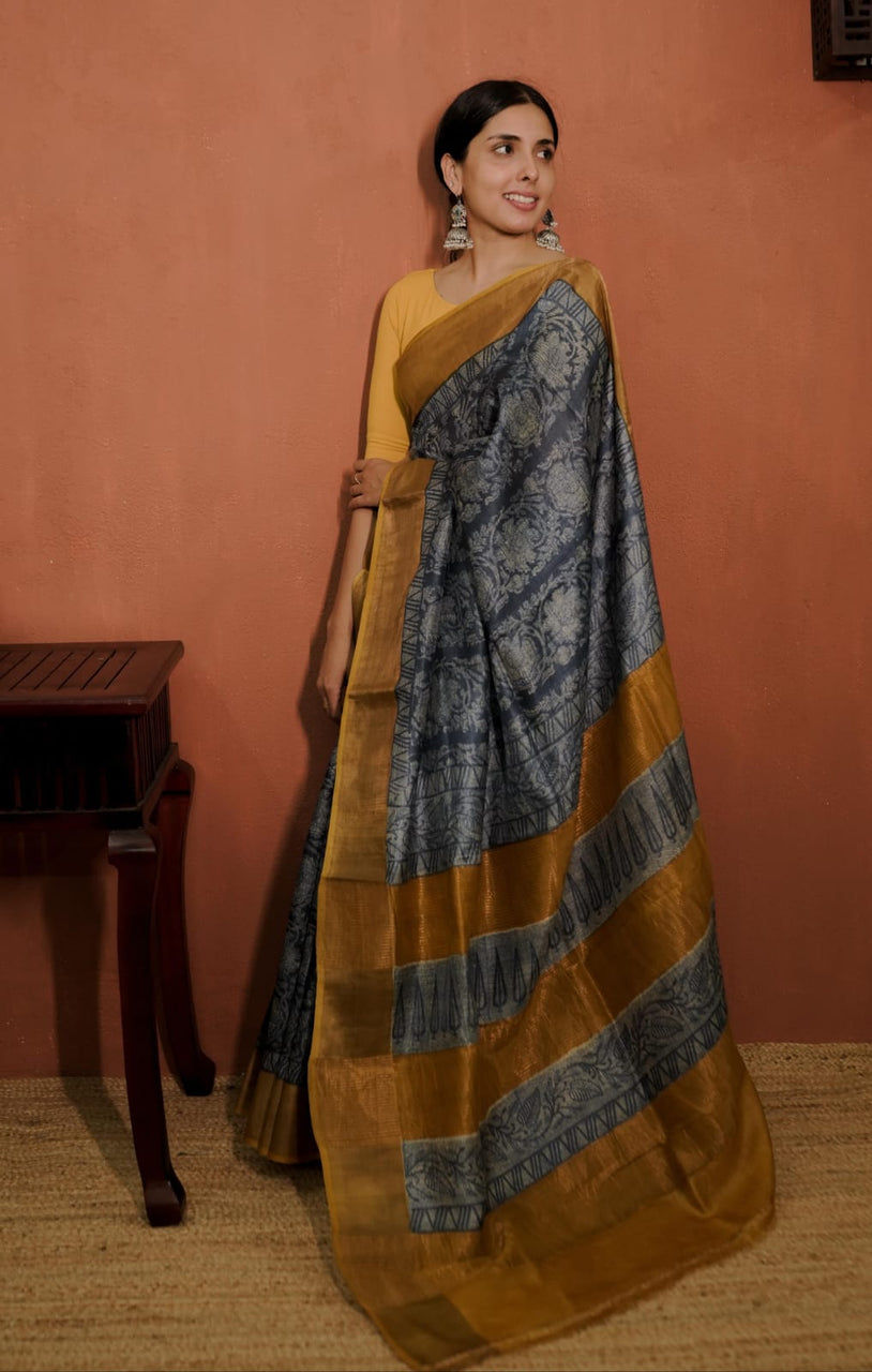 Tussar Silk Saree with Border (Desi Tussar Silk)